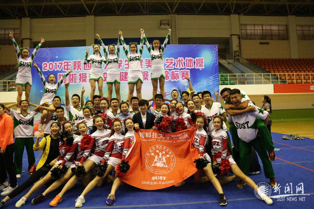 6月5日至7日,由陜西省教育廳主辦,陜西省學(xué)生體育協(xié)會,西安郵電大學(xué)承辦的2017年陜西省大學(xué)生健美藝術(shù)體操啦啦操錦標(biāo)賽在西安郵電大學(xué)舉行,我校啦啦操隊榮獲舞蹈啦啦操花球自編和集體技巧兩項冠軍。