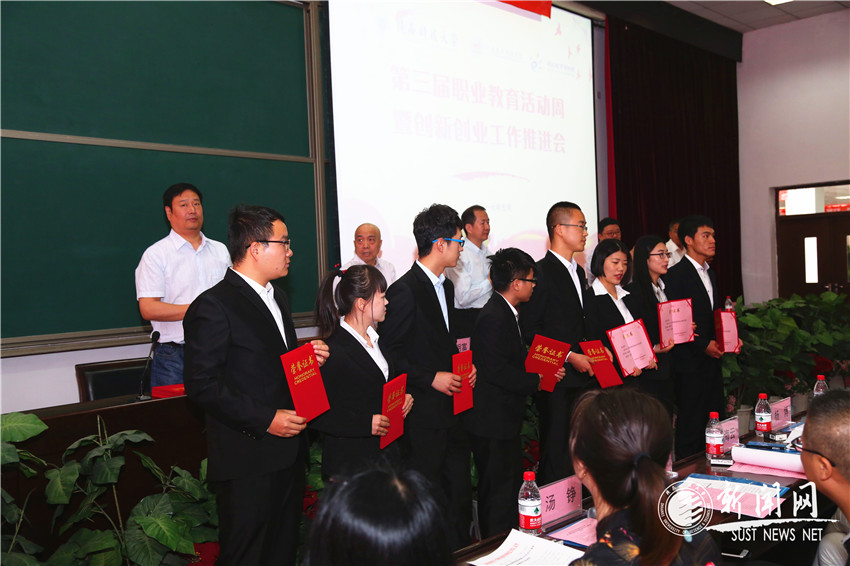 院黨委副書記薛力源宣讀《職業(yè)教育師范學(xué)院“雙創(chuàng)”教育工作實(shí)施方案》。副院長(zhǎng)李煥朝宣讀了“職教英才”表彰決定和“創(chuàng)業(yè)導(dǎo)師”聘任決定。獲獎(jiǎng)學(xué)生代表王麗娜做了發(fā)言。劉正安為學(xué)院受聘的“創(chuàng)業(yè)導(dǎo)師”頒發(fā)了聘書。學(xué)工部部長(zhǎng)助理李萌代表學(xué)工部和團(tuán)委對(duì)職業(yè)教育活動(dòng)周暨創(chuàng)新創(chuàng)業(yè)工作推進(jìn)會(huì)的成功舉辦表示熱烈祝賀。