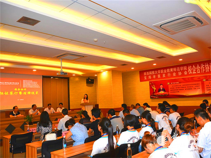 7月17日上午,我校職業(yè)教育師范學(xué)院與寶雞六家企業(yè)在寶雞市鵬博財富中心簽訂校企合作協(xié)議。寶雞市商務(wù)局副局長段長軍,金臺區(qū)人社局局長王賢輝,寶雞市面皮行業(yè)協(xié)會會長、富方圓食品機械有限責(zé)任公司董事長張新懷,寶雞市香味氏族餐飲文化管理有限公司總經(jīng)理王毅,寶雞憶路創(chuàng)客電子商務(wù)有限公司總經(jīng)理楊君,岐山縣怡源食品有限公司總經(jīng)理羅軍偉,寶雞和渲得餐飲文化管理有限公司總經(jīng)理孫燕博,我校職業(yè)教育師范學(xué)院黨委書記王貴平,黨委副書記薛力源及職教學(xué)院“小食代”社會實踐團參加此次簽約儀式。