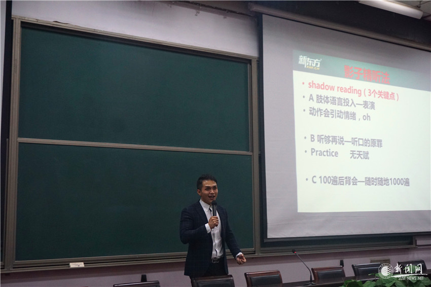 為營(yíng)造校園留學(xué)氛圍,提高學(xué)生英語(yǔ)學(xué)習(xí)興趣,4月6日晚,我校國(guó)際合作與交流處邀請(qǐng)西安新東方學(xué)校副校長(zhǎng)梁煥臻為師生作了題為《學(xué)習(xí)英語(yǔ)與點(diǎn)燃?jí)粝搿返膶n}講座。國(guó)際交流處副處長(zhǎng)薛朝華主持講座。