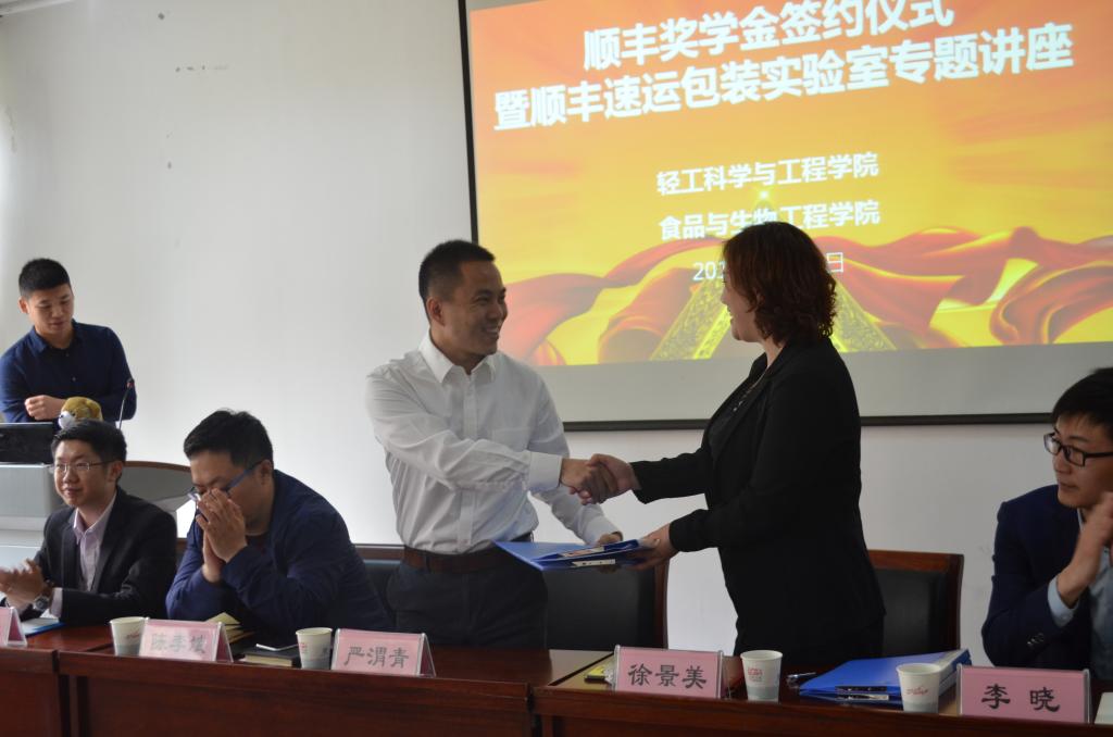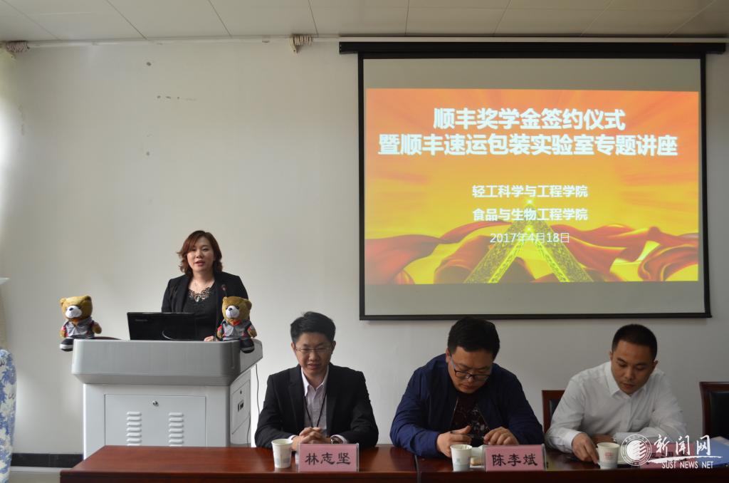 4月18日,順豐企業(yè)獎學(xué)金在我校輕工科學(xué)與工程學(xué)院、食品與生物工程學(xué)院設(shè)立。兩個學(xué)院聯(lián)合舉辦了獎學(xué)金簽約儀式,相關(guān)院領(lǐng)導(dǎo)、順豐速運(yùn)包裝實(shí)驗(yàn)室負(fù)責(zé)人徐景美、順豐速運(yùn)人才管理處人才管理高級經(jīng)理張燕、順豐集團(tuán)招聘組招聘高級經(jīng)理李少強(qiáng)、林志堅(jiān)出席儀式。