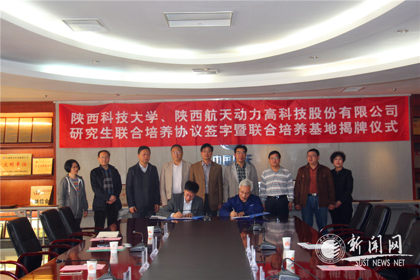 研究生院院長蒲永平代表我校簽訂了《陜西科技大學、陜西航天動力高科技股份有限公司研究生聯(lián)合培養(yǎng)基地協(xié)議》。