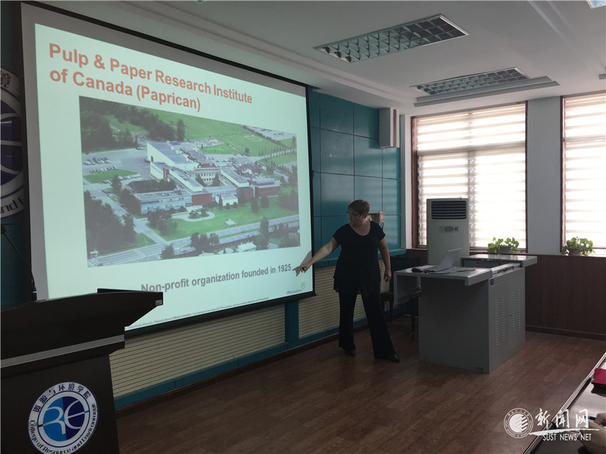 米歇爾·瑞米德作了題為“加拿大林產(chǎn)品創(chuàng)新研究院的簡介和研究動態(tài)”的學(xué)術(shù)報告。她首先簡單介紹了加拿大紙漿和造紙研究所及加拿大森林產(chǎn)品創(chuàng)新工業(yè)研究院。緊接著介紹其研究院從森林到市場的整個鏈、其獨特靈活的商業(yè)模式、研究院上游部門等,當(dāng)米歇爾·瑞米德講到木材建造多層建筑及道路橋梁等的新的解決方案時,引起全體師生的極大興趣。隨后詳細(xì)講解纖維素納米晶體、纖維素纖絲和木素產(chǎn)品的工業(yè)應(yīng)用以及生物質(zhì)品和環(huán)境服務(wù)的關(guān)系等,讓我們看到了紙漿和造紙未來更大的發(fā)展和應(yīng)用前景。