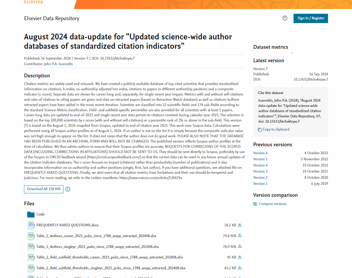 近日,美國斯坦福大學John P.A.Ioannidis教授團隊和國際權(quán)威學術(shù)出版社愛思唯爾數(shù)據(jù)庫(Elsevier)發(fā)布2024年度全球各學科前2%頂尖科學家榜單(World’s Top 2% Scientists 2024)。榜單分為“2024年度科學影響力排行榜”和“終身科學影響力排行榜”,其中“終身科學影響力”關(guān)注科研人員整個學術(shù)生涯迄今的影響力,“年度科學影響力”聚焦科研人員上一年度(2023)的學術(shù)影響力。