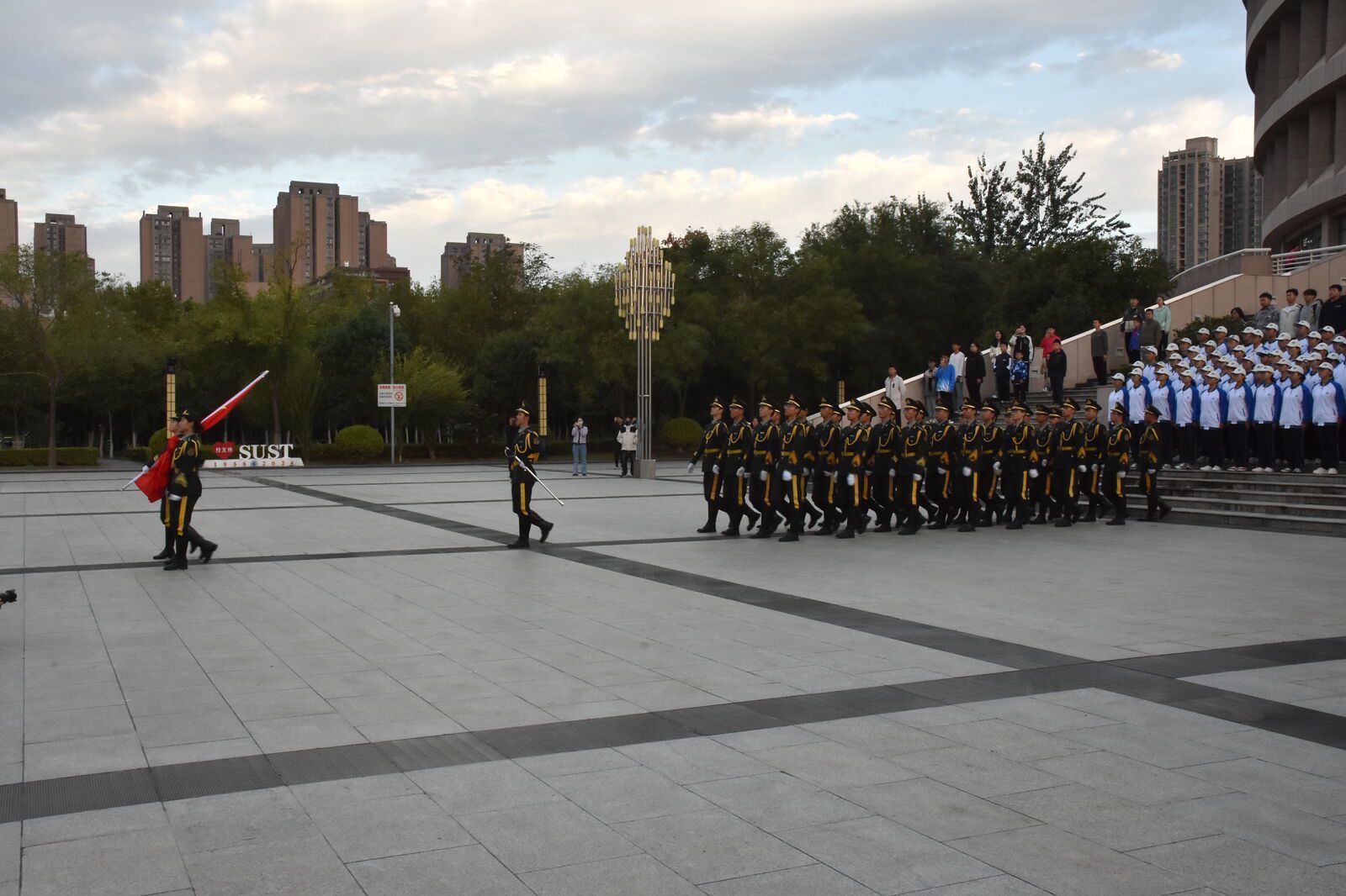 學(xué)生黨員代表、第十一屆國(guó)旗護(hù)衛(wèi)隊(duì)指導(dǎo)員汪盈如進(jìn)行了以“挺膺擔(dān)當(dāng) 強(qiáng)國(guó)有我”為主題的國(guó)旗下演講,用深情的語調(diào)、飽滿的熱情歌頌祖國(guó)七十五載歲月崢嶸,表達(dá)了陜科大青年學(xué)子為中國(guó)式現(xiàn)代化挺膺擔(dān)當(dāng)?shù)募で榕c熱血。升旗儀式在全體師生齊聲高唱《歌唱祖國(guó)》中圓滿結(jié)束。