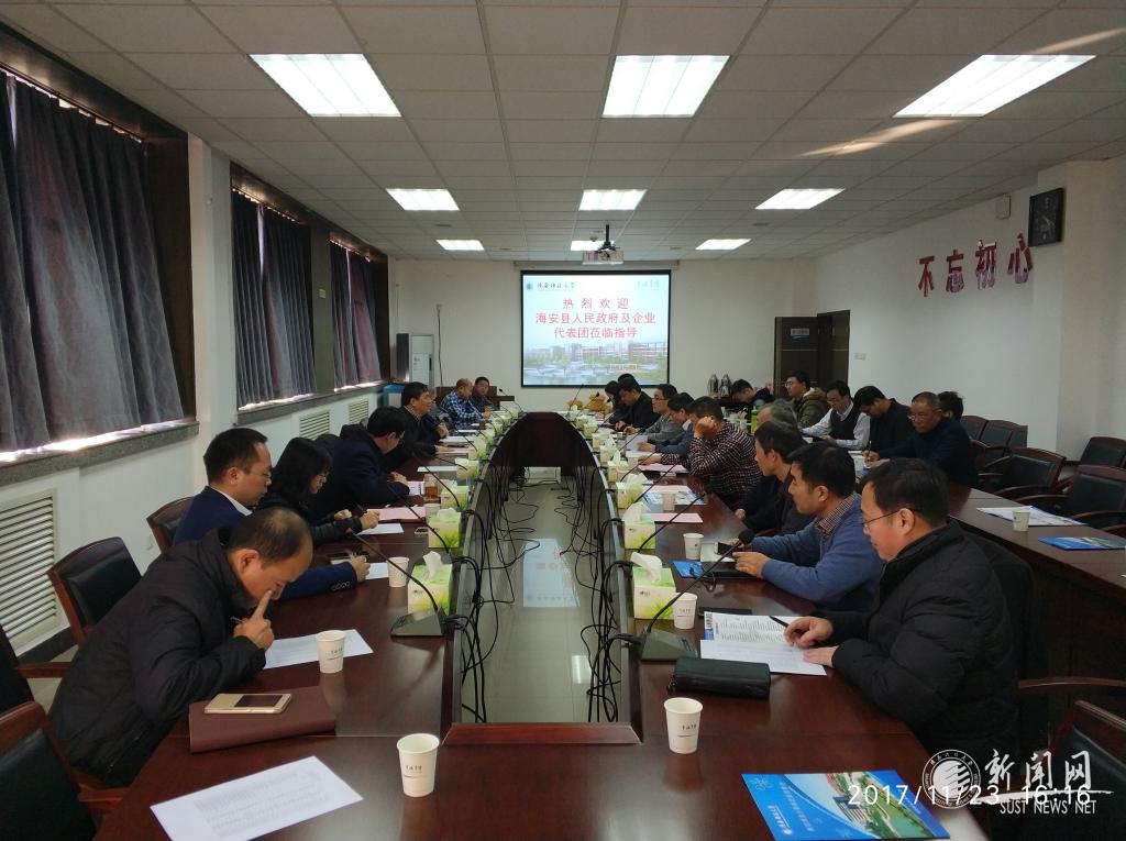 11月23日,江蘇省海安縣人民政府及企業(yè)代表團一行25人來我校進行科技洽談,就進一步加強雙方產(chǎn)學研合作、推動企業(yè)轉(zhuǎn)型升級進行了深入交流,前沿院常務副院長殷海榮教授主持了科技洽談會。