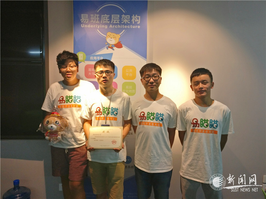 8月21日至25日,第一屆全國高校易班開發(fā)者大會在上海舉行。由文理學院張誠,電氣工程與信息學院高宇挺、王景鋒,職業(yè)教育示范學院韓興達等4名學生組成的我校開發(fā)團隊在兩天的激烈比拼中經(jīng)過創(chuàng)意討論、應(yīng)用開發(fā)、軟件調(diào)試等環(huán)節(jié),完成了“校園綜合服務(wù)平臺”應(yīng)用,后經(jīng)產(chǎn)品路演,贏得了評委一致好評,并作為4所陜西參賽高校的唯一獲獎代表,最終榮獲三等獎。