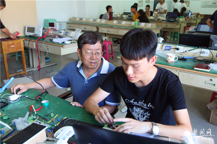 晚上10點(diǎn)鐘,電氣與信息工程學(xué)院實(shí)驗(yàn)室依然燈火通明,全國(guó)大學(xué)生電子設(shè)計(jì)競(jìng)賽陜西賽區(qū)的比賽正在如火如荼地進(jìn)行著,17個(gè)競(jìng)賽團(tuán)隊(duì)的51名參賽學(xué)子不畏酷暑,正聚精會(huì)神地準(zhǔn)備著各自的競(jìng)賽作品。張震強(qiáng)、侯勇嚴(yán)兩位負(fù)責(zé)老師表示,電子設(shè)計(jì)競(jìng)賽是全國(guó)大學(xué)生四大學(xué)科競(jìng)賽之一,學(xué)校歷來(lái)重視,從3月份開(kāi)始,我校13名指導(dǎo)老師就通過(guò)初步選拔、集中培訓(xùn)、學(xué)生分組、專項(xiàng)培訓(xùn)、賽前強(qiáng)化等環(huán)節(jié)準(zhǔn)備今年的比賽。學(xué)生們熱情也極高,從8月9日上午8點(diǎn)至12日晚8點(diǎn),從選題開(kāi)始,到出設(shè)計(jì)報(bào)告、動(dòng)手制作實(shí)物作品,他們分秒必爭(zhēng),以飽滿的熱情、堅(jiān)定的信念不斷努力著。張震強(qiáng)表示,電子設(shè)計(jì)競(jìng)賽的舉辦,對(duì)我校電子信息類(lèi)課程的教學(xué)改革與促進(jìn)起到推動(dòng)作用,也培養(yǎng)了學(xué)生的創(chuàng)新能力、實(shí)踐操作能力以及團(tuán)隊(duì)協(xié)作精神,這個(gè)暑假,師生收獲都很大。