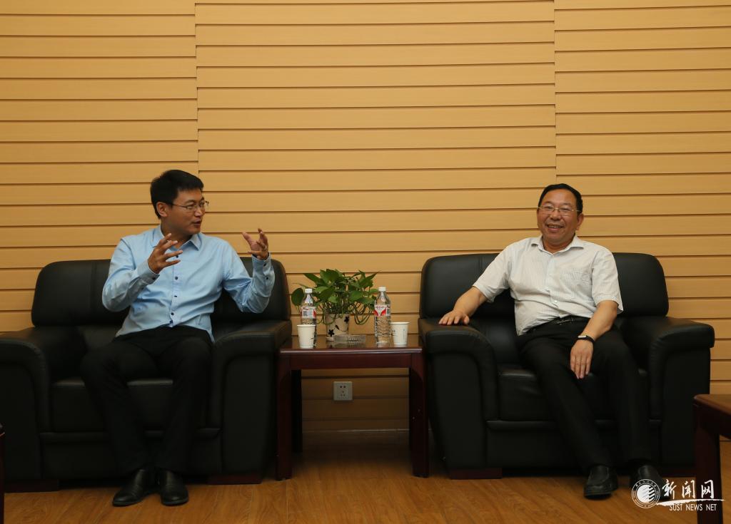 會前,姚書志與劉俊麟就校企合作等相關事宜進行座談。
