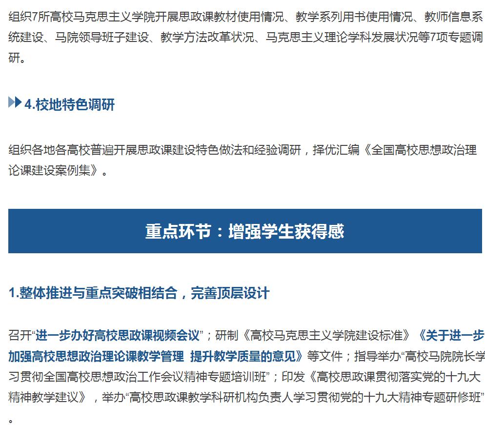 全國高校思想政治工作會(huì)后,教育部黨組高度重視高校思政課建設(shè),將2017年定為“高校思想政治理論課教學(xué)質(zhì)量年”,并于近日審議通過《2017年高校思想政治理論課教學(xué)質(zhì)量年專項(xiàng)工作總體方案》。