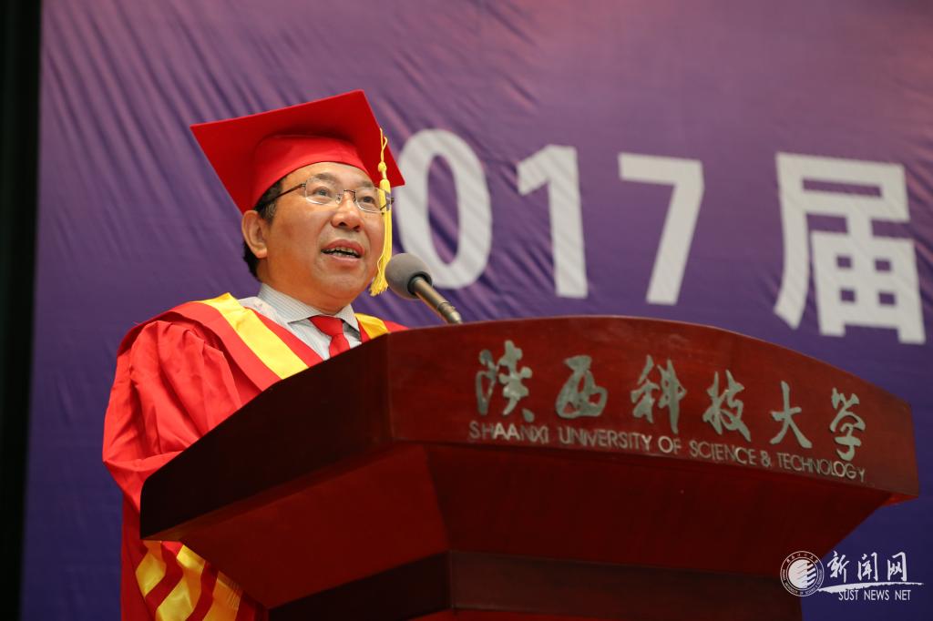 同學們!你們?nèi)松蚧A、立根基的大學時光在科大度過。今天,在大家完成學業(yè)即將走出校門的時候,還要給大家交代點兒什么呢?我不禁想起一個同學的微信留言,他真誠地表白到:母?!獙幵缸约毫R八百遍,也不允許別人說一句不好的話。明天,陜科大就是你們的母校了,為什么見不得別人說母校一句不好的話呢?因為在母校,有你們的青春年華、夢想追求、激情活力和初戀印記,更有學校賦予大家深深的科大烙印——“至誠至博”的精神底色??梢哉f,“至誠至博”是指引一代代科大人精神坐標的燈塔,是我們科大人眾志成城、凝心聚力的堅強堡壘,也是我們科大人臨危不懼、安之若素應對一切挑戰(zhàn)的法寶!所以,我希望大家務必要銘記“至誠至博”的校訓精神,矢志不渝把“至誠至博”作為我們科大人終生不懈努力的至上追求、至臻品格和至純底色。