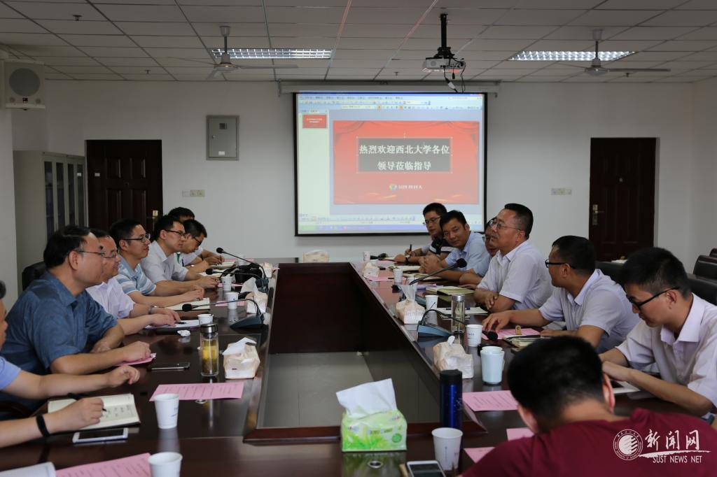 楊建介紹了參會人員和我校學生工作的基本情況。董國強介紹了此次交流考察意圖和參會人員,同時也對西北大學的學生工作及輔導員隊伍建設做了介紹。李曉詳細介紹了我校大學生思想政治教育工作思路、舉措、成效和輔導員隊伍建設情況。李萌介紹了我校參加省級、大區(qū)級和國家級輔導員職業(yè)能力大賽的備賽情況。易班建設工作站指導老師陶興旺講解了我校易班建設情況。