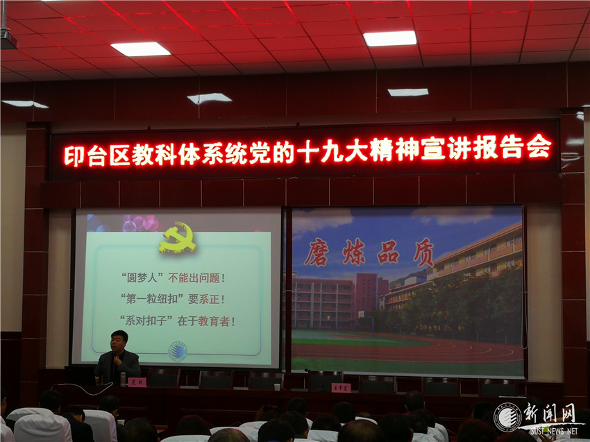 繼在銅川印臺區(qū)王石凹街道辦進行黨的十九大精神宣講后,12月1日,馬克思主義學院十九大宣講團再赴銅川印臺區(qū),面向印臺區(qū)教科體局班子成員、基層黨支部委員、局機關支部及教研室支部全體黨員等150余人開展理論宣講。此次宣講會由印臺區(qū)教科體局副局長王軍宏主持,我校范昕老師主講。