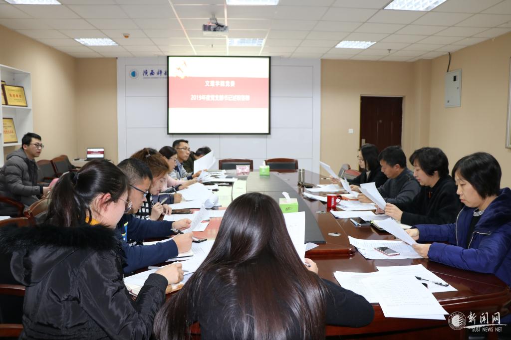 為進(jìn)一步學(xué)習(xí)貫徹習(xí)近平新時(shí)代中國(guó)特色社會(huì)主義思想和黨的十九大精神,落實(shí)全面從嚴(yán)治黨主體責(zé)任,扎實(shí)推進(jìn)黨支部建設(shè),1月6日下午文理學(xué)院黨委召開(kāi)2019年度黨支部書記述職答辯會(huì),學(xué)院黨委班子成員、系主任及全體支部書記參加,會(huì)議由院黨委委員彭丹主持。