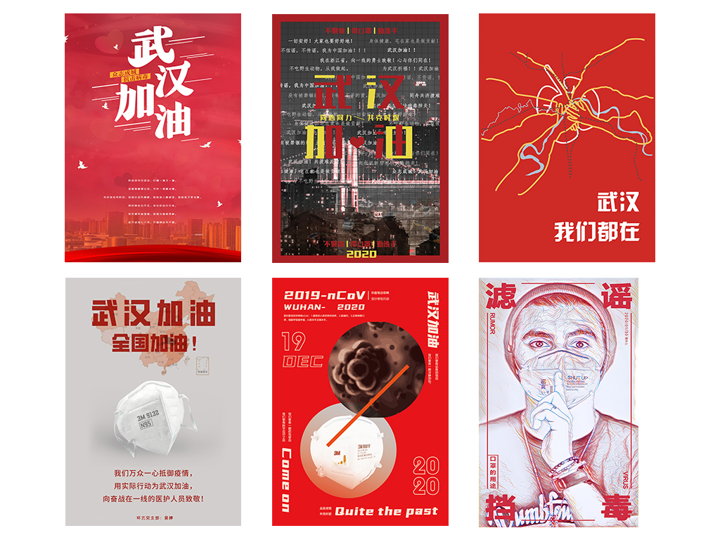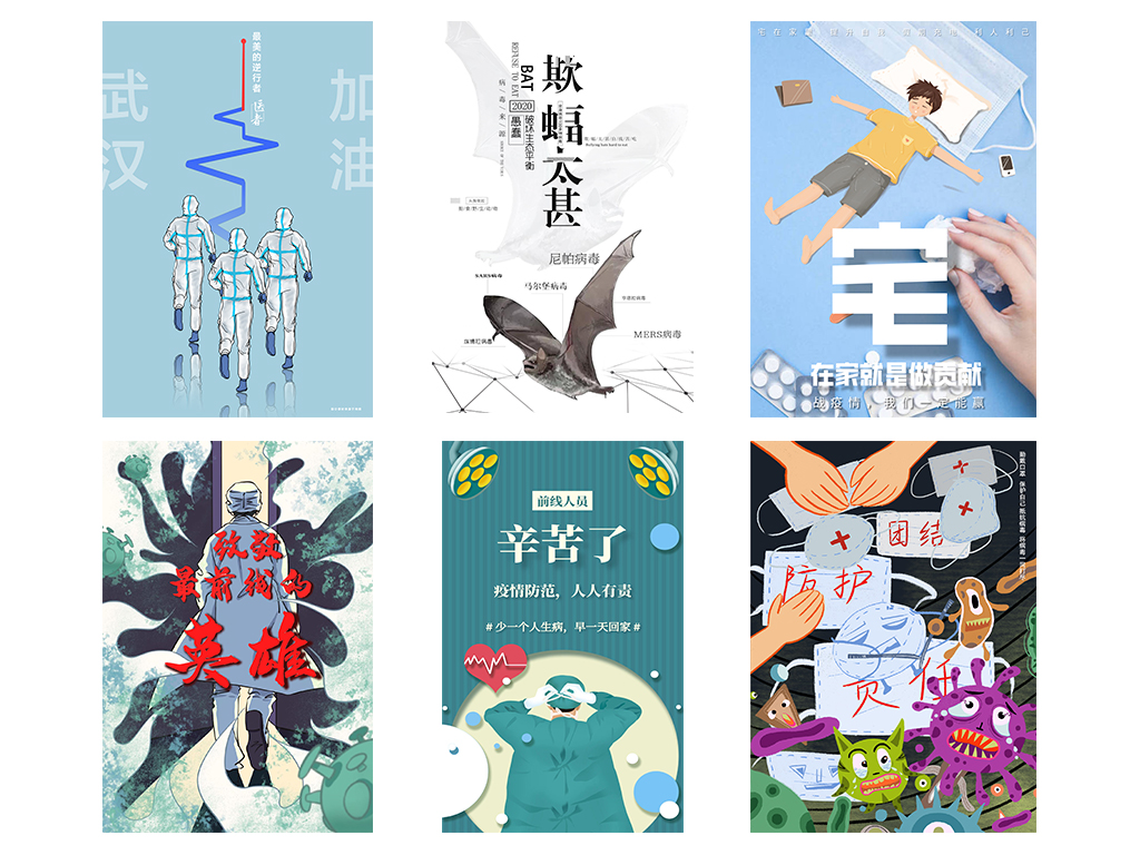 設(shè)藝學(xué)院9個本科生黨支部充分發(fā)揮設(shè)計專業(yè)特長共制作了91張“新型冠狀病毒感染肺炎疫情防控”主題海報設(shè)計作品,設(shè)計主題包含:防疫知識宣傳、致敬英雄和加油鼓勁類,密切關(guān)注疫情防控工作的點(diǎn)點(diǎn)滴滴,服務(wù)師生等。