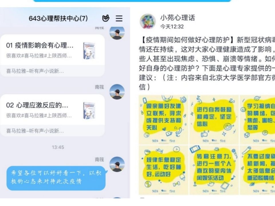 針對疫情防控期間可能會出現(xiàn)的學(xué)生心理困擾,學(xué)生黨支部協(xié)同學(xué)院心理協(xié)會成立心理幫扶小組,將設(shè)崗定責(zé)人員、宿舍長、班級心理委員等學(xué)生干部聯(lián)結(jié)起來,積極了解學(xué)生群體的心理健康狀況,以宿舍為單位開展線上心理幫扶、政策宣講等工作,同時建立“小苑心里話”官Q(mào)互動平臺,在這個特殊時期,努做好學(xué)生群體的情緒疏導(dǎo),幫助他們做好心理防“疫”!