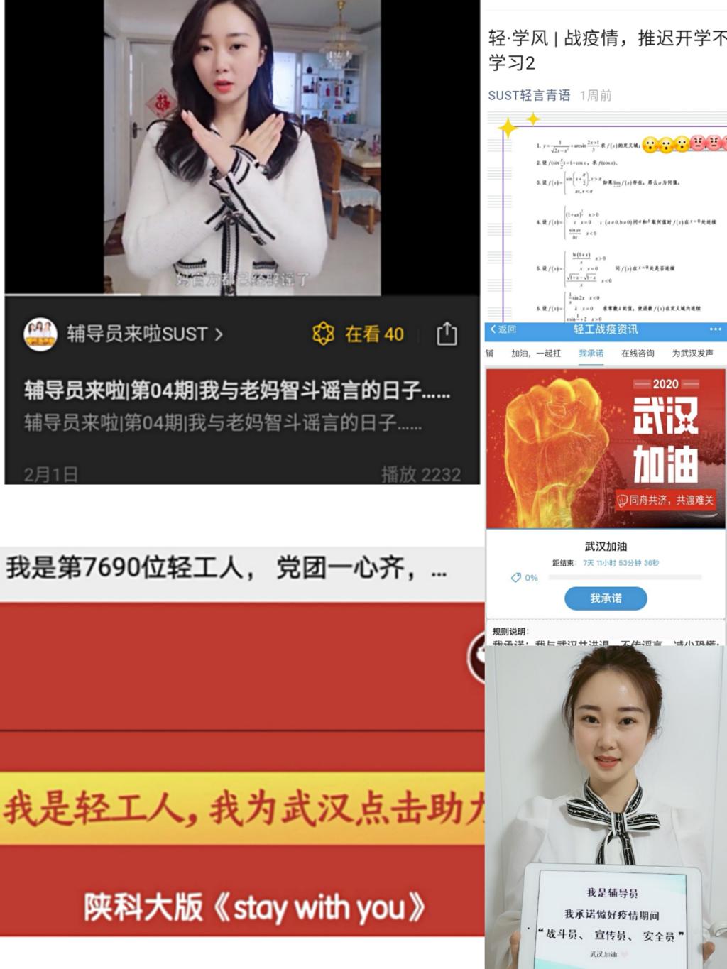 思想重視,行動(dòng)有力。在疫情面前,學(xué)生的思想引領(lǐng)更為關(guān)鍵。科大輔導(dǎo)員擰成一股繩,堅(jiān)守責(zé)任田,充分發(fā)揮網(wǎng)絡(luò)思政的育人功能,做好防疫知識(shí)的傳播者、學(xué)習(xí)提升的宣講者。