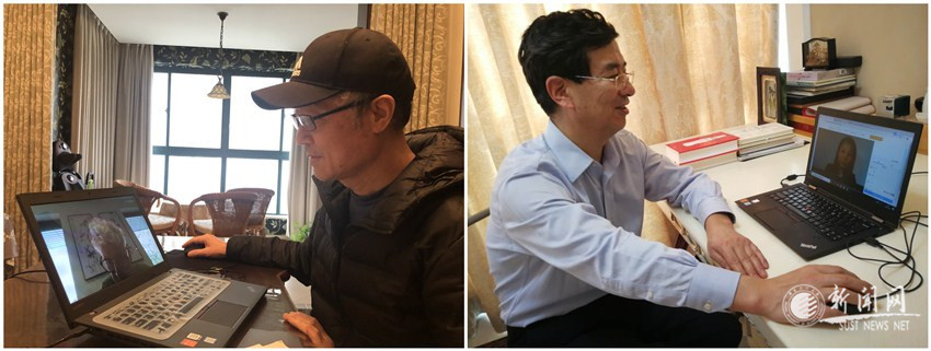 學院班子成員薛朝華教授(左一)、趙雪妮教授全程監(jiān)管線上教學運行情況