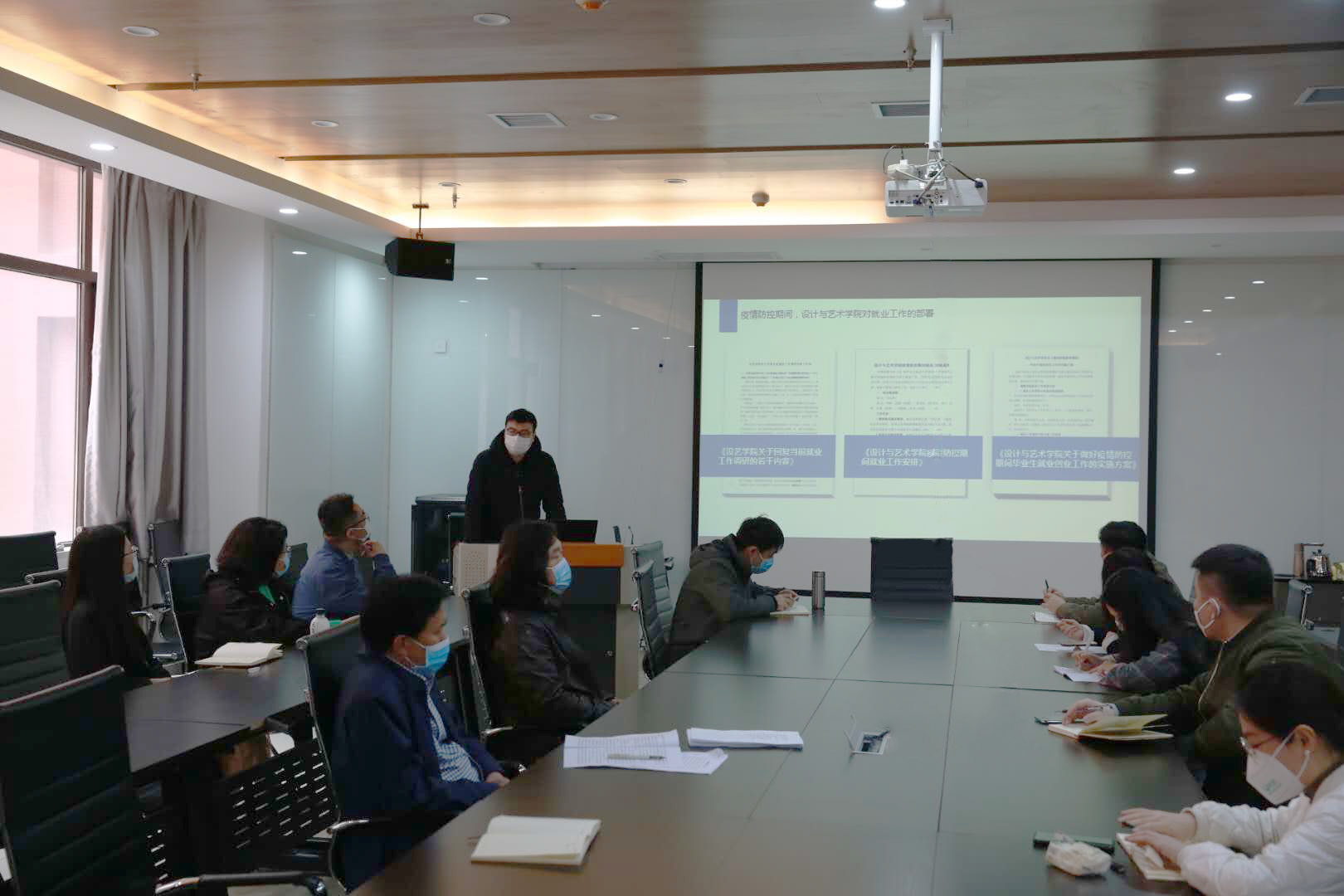 黨政領(lǐng)導(dǎo)高度重視,全體職工共同參與。3月30日上午,設(shè)藝學(xué)院在人文樓B326會(huì)議室召開(kāi)2020屆畢業(yè)生就業(yè)工作深入部署推進(jìn)會(huì)。學(xué)院黨政班子、教研室主任、教工黨支部書(shū)記、部分碩士生導(dǎo)師及全體輔導(dǎo)員參加會(huì)議。會(huì)議由院黨委副書(shū)記記李紅坦主持。會(huì)上李紅坦向與參會(huì)人員做了主題為《疫情期間設(shè)計(jì)與藝術(shù)學(xué)院就業(yè)形勢(shì)以及全員參與就業(yè)工作的必要性》的專(zhuān)題匯報(bào),深刻分析了當(dāng)前學(xué)院就業(yè)工作所面臨的嚴(yán)峻形勢(shì),傳達(dá)了學(xué)校黨委及校就業(yè)指導(dǎo)中心在疫情防控期間兩次就業(yè)工作專(zhuān)題會(huì)的相關(guān)精神與部署要求,并結(jié)合3與9日學(xué)院就業(yè)工作推進(jìn)會(huì)擬定的《設(shè)計(jì)與藝術(shù)學(xué)院疫情防控期間的就業(yè)工作安排》以及3月26日下發(fā)的《設(shè)計(jì)與藝術(shù)學(xué)院關(guān)于做好疫情防控期間畢業(yè)生就業(yè)創(chuàng)業(yè)工作的實(shí)施方案》,認(rèn)真解讀了學(xué)院當(dāng)前推進(jìn)就業(yè)工作的具體實(shí)施辦法及工作要求。隨后,設(shè)藝學(xué)院黨委書(shū)記杜致博強(qiáng)調(diào),當(dāng)前全國(guó)疫情防控形勢(shì)向好發(fā)展,“穩(wěn)就業(yè)”既是本職工作也是政治任務(wù),各黨支部書(shū)記、教研室主任要配合畢業(yè)班輔導(dǎo)員分門(mén)分類(lèi)做好畢業(yè)生就業(yè)情況的準(zhǔn)確摸底、就業(yè)觀念引導(dǎo)和就業(yè)指導(dǎo)工作。最后,院長(zhǎng)詹秦川結(jié)合當(dāng)前學(xué)院就業(yè)工作的形勢(shì)與要求,從畢業(yè)論文指導(dǎo)、日常教學(xué)、科學(xué)研究等角度要求全體教師注意做好日常教學(xué)科研工作與就業(yè)工作的結(jié)合,各教研室要主動(dòng)作為,充分發(fā)動(dòng)行業(yè)、校友資源為畢業(yè)班學(xué)生積極推薦招聘崗位,協(xié)同畢業(yè)班輔導(dǎo)員做好就業(yè)困難學(xué)生群體的就業(yè)指導(dǎo)與幫扶工作。