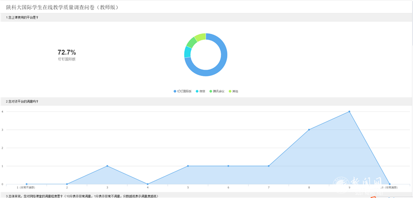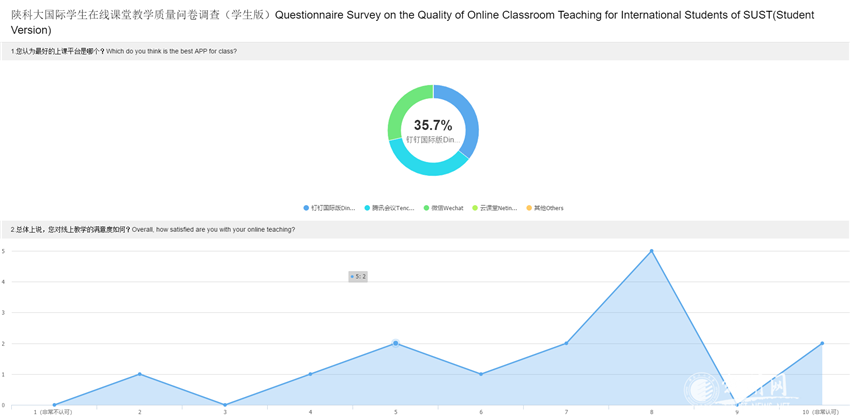 多措并舉抓線上教學,國際教育學院積極服務師生。開展調(diào)查問卷,察實情求實效。為了更好的了解和掌握授課教師線上教學運行和國際學生學習效果,積極改進學院線上教學工作,學院對線上教學運行情況進行了問卷調(diào)查。此次線上問卷圍繞學生線上學習工具與學習平臺、線上學習困難、教師線上教學評價等,問卷還設計了一些開放性題目,希望授課教師、國際學生建言獻策,提供更多好的建議、暢談自己對線上教學的真實需求。