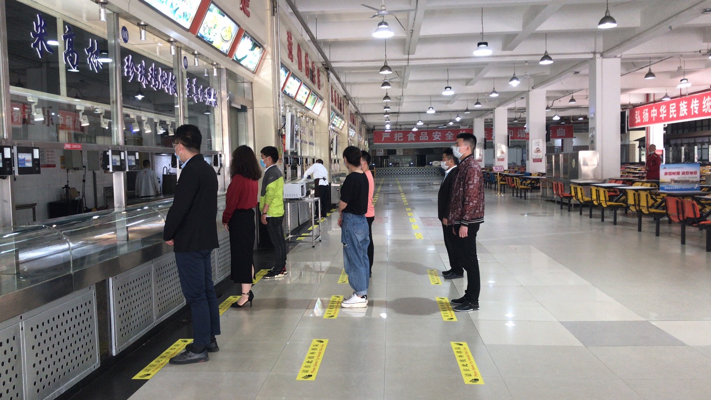 通過(guò)食堂溫馨提示、LED大屏幕等對(duì)就餐人員進(jìn)行引導(dǎo),間隔1米的排隊(duì)指示黃線,打飯時(shí)保持安全距離。