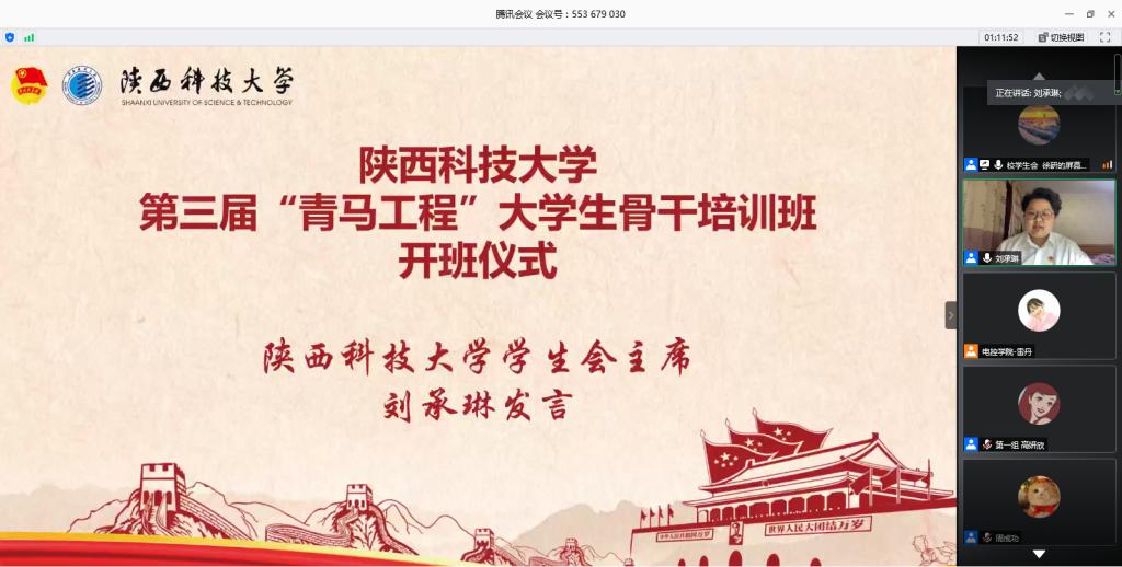 5月26日晚,陜西科技大學(xué)第三屆“青馬工程”大學(xué)生骨干培訓(xùn)班(“大骨班”)線上開(kāi)班儀式舉行。開(kāi)班儀式由陜西科技大學(xué)學(xué)生會(huì)副主席莫永生主持。