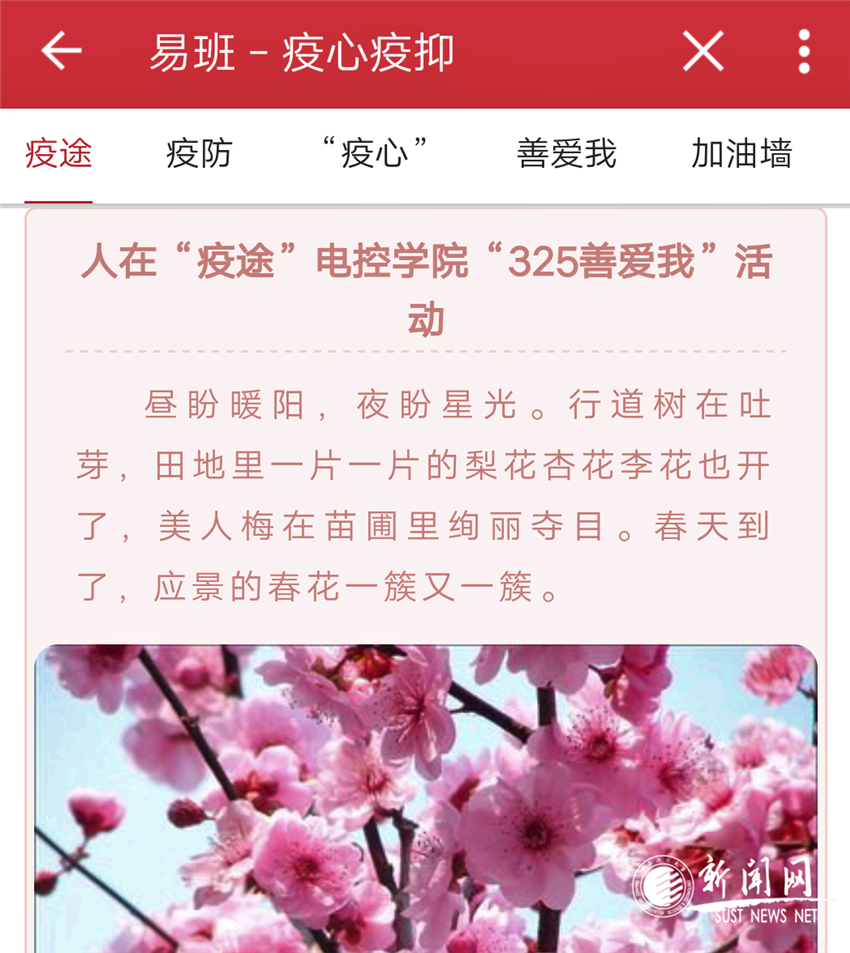 我校電氣與控制工程學(xué)院在325-525心理育人宣傳季期間依托新媒體開(kāi)展了“云上之愛(ài),讓陪伴常在”大學(xué)生心理健康教育系列活動(dòng),提高疫情期間心理健康服務(wù)的針對(duì)性,為學(xué)生在特殊時(shí)期積極應(yīng)對(duì)心理壓力保駕護(hù)航。