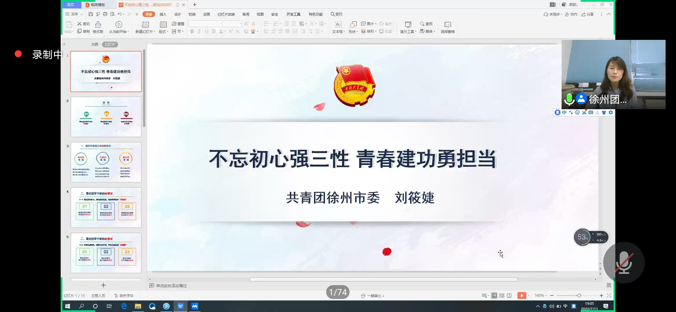 為進(jìn)一步加強(qiáng)團(tuán)員理論素質(zhì)培訓(xùn),開闊學(xué)員眼界,同時(shí)鞏固前期理論和實(shí)踐課程的相關(guān)知識(shí),7月11日晚9點(diǎn),本期團(tuán)員培訓(xùn)班特邀共青團(tuán)徐州市委副書記劉筱婕為我校團(tuán)課學(xué)員進(jìn)行以“不忘初心強(qiáng)三性,青春建功勇?lián)?dāng)”為主題的網(wǎng)上理論授課。