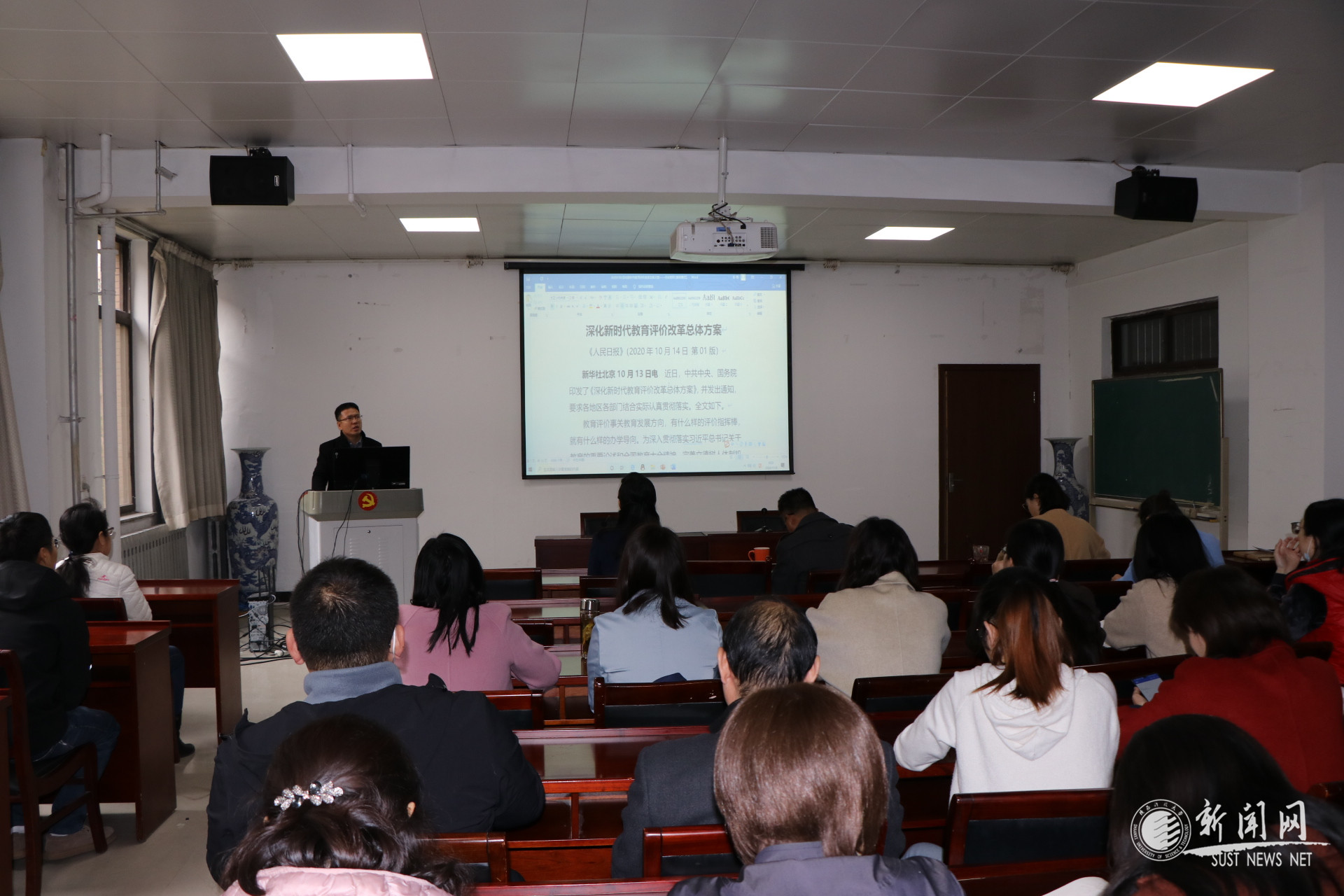 食品學(xué)院黨委于11月3日上午,采取召開教職工大會(huì)嵌入理論中心組學(xué)習(xí)的方式,集中學(xué)習(xí)中共中央、國(guó)務(wù)院印發(fā)的《深化新時(shí)代教育評(píng)價(jià)改革總體方案》(以下簡(jiǎn)稱《總體方案》)。學(xué)習(xí)會(huì)由學(xué)院黨委書記訾榮祿主持,學(xué)院黨委委員、教工黨支部委員會(huì)成員、全體教職工參加會(huì)議。