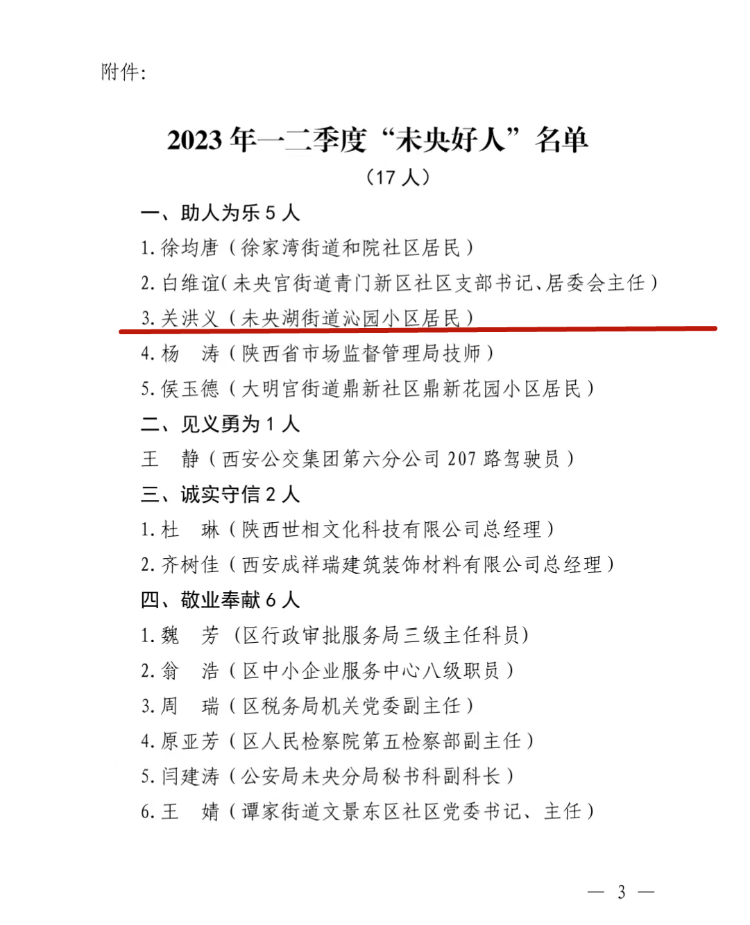 7月,未央?yún)^(qū)開(kāi)展了2023年一二季度“未央好人”推選活動(dòng)。經(jīng)宣傳發(fā)動(dòng)、基層推薦、資格審查、綜合評(píng)定、社會(huì)公示等環(huán)節(jié),關(guān)洪義等17人被評(píng)為“未央好人”。