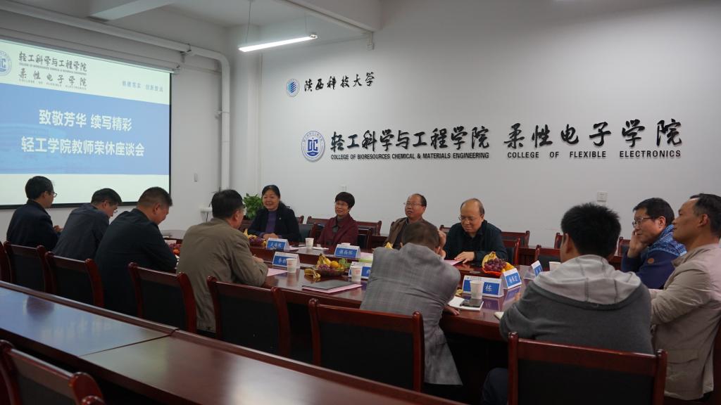 10月12日,輕工科學(xué)與工程學(xué)院(柔性電子學(xué)院)在218會(huì)議室舉行教師榮休座談會(huì)。王海艦、強(qiáng)西懷、黃玲、李鴻魁等4位退休教師,輕工學(xué)院黨政班子成員及部分教師代表參加了座談。院工會(huì)主席張乾隆主持會(huì)議。