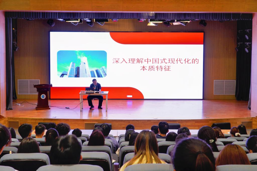 李鵬從黨的二十大報告中提到的中國式現(xiàn)代化的五大特征講起,在對每個特征進行詳細闡述的基礎(chǔ)上,和學(xué)員們深入探討中國式現(xiàn)代化的深刻內(nèi)涵以及重要意義。他表示,中國式現(xiàn)代化既有各國現(xiàn)代化的共同特征,更有基于中國國情的獨有特征。中國式現(xiàn)代化是建黨百年來理論創(chuàng)新的重要成果,是馬克思主義基本原理同中華優(yōu)秀傳統(tǒng)文化相結(jié)合的產(chǎn)物,為實現(xiàn)中華民族偉大復(fù)興提供了方向和路徑,也為人類實現(xiàn)現(xiàn)代化提供了一種新的選擇。授課過程中,李鵬教育引導(dǎo)學(xué)員們要將習(xí)近平總書記提到的“以史為鑒,開創(chuàng)未來”融入工作與學(xué)習(xí),要堅持讀原著學(xué)原文悟原理,養(yǎng)成愛讀書、善讀書、讀好書的習(xí)慣。不斷把握歷史規(guī)律、堅定歷史自信、掌握歷史主動;不斷提高認識水平和辨別能力,增強錨定既定目標、意氣風(fēng)發(fā)走向未來的勇氣和力量,更加清醒地、堅定地辦好我們當前的事情;不斷做到理論與實踐相結(jié)合,不負時代、不負韶華,踔厲奮發(fā)、勇毅前行,爭當中國式現(xiàn)代化新征程上的先鋒力量。