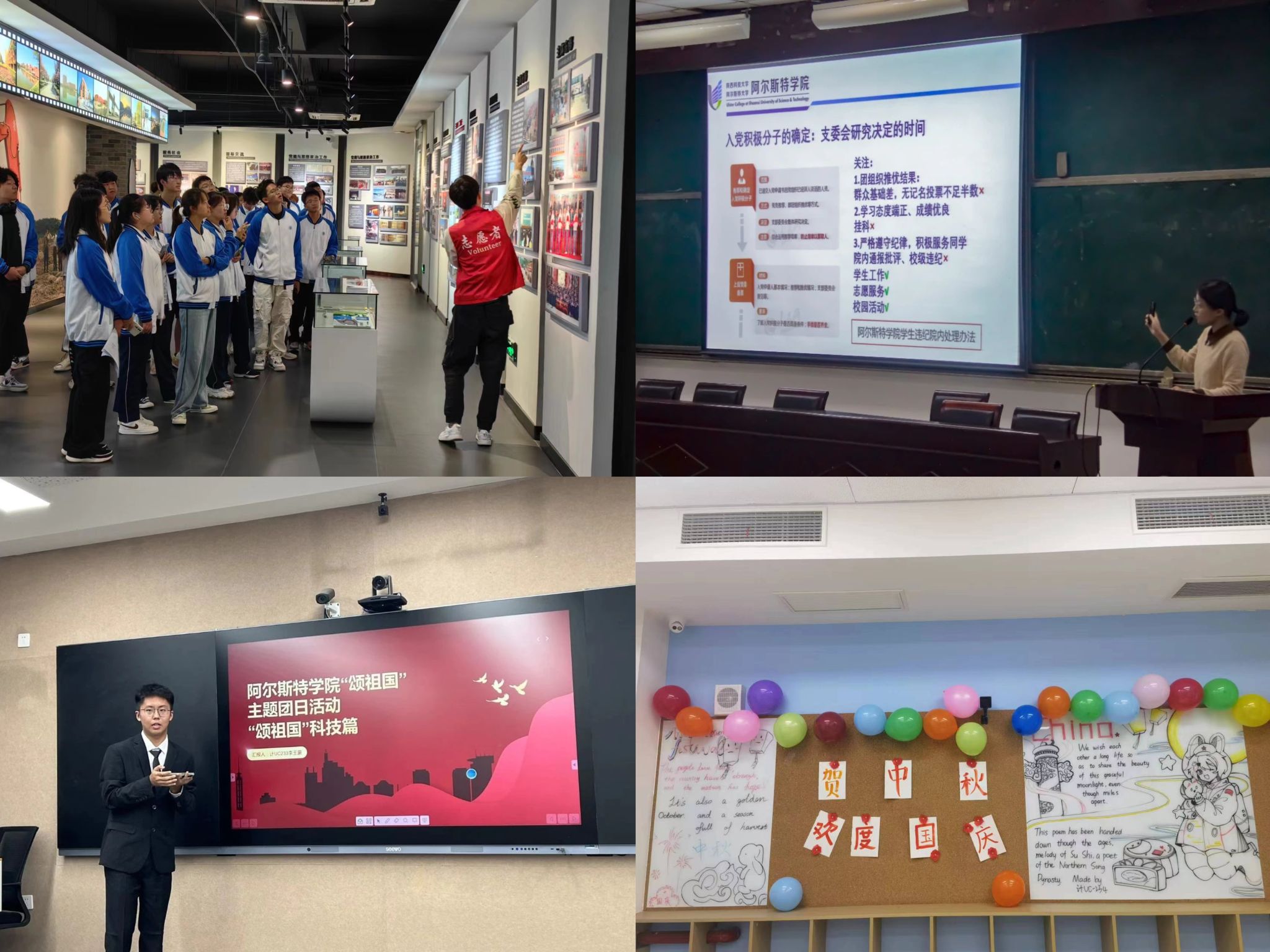 強(qiáng)化思想政治引領(lǐng),筑牢理想信念根基。學(xué)院緊密結(jié)合習(xí)近平新時(shí)代中國(guó)特色社會(huì)主義思想和黨的二十大精神,多渠道、多舉措開展思想政治教育,幫助新生明確發(fā)展方向。學(xué)院依托《阿爾斯特學(xué)院大學(xué)生家國(guó)情懷培育實(shí)施方案(試行)》,充分發(fā)揮學(xué)業(yè)導(dǎo)師(班主任)、輔導(dǎo)員、專業(yè)負(fù)責(zé)人及思政專業(yè)老師引領(lǐng)作用,通過組織黨團(tuán)教育講座、主題觀影、參加升旗儀式、繪制國(guó)慶主題板報(bào)、紅歌傳唱等活動(dòng),教育引導(dǎo)新生堅(jiān)定理想信念,樹立遠(yuǎn)大目標(biāo);組織開展“迎中秋·慶國(guó)慶”主題班會(huì),通過文藝表演、對(duì)詩(shī)詞、猜燈謎、DIY月餅等活動(dòng),帶領(lǐng)新生感悟中華優(yōu)秀傳統(tǒng)文化之美;組織新生赴中國(guó)輕工業(yè)博物館和校史館參觀學(xué)習(xí)、集中學(xué)習(xí)學(xué)校章程,引導(dǎo)新生了解校史校情,銘記國(guó)家記憶,凝聚民族力量。