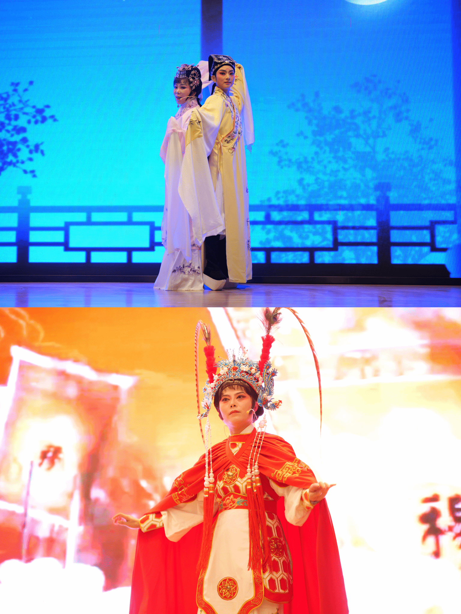 演出以越劇《孔雀東南飛》《牡丹亭》等經(jīng)典劇目片段為主,讓學(xué)生品味越劇藝術(shù)文辭之典雅、曲調(diào)之清雅、表演之優(yōu)雅、格調(diào)之高雅。演出還增設(shè)了學(xué)生互動(dòng)環(huán)節(jié),觀眾上臺(tái)體驗(yàn)花旦水袖和小生服裝,沉浸式感受越劇魅力。