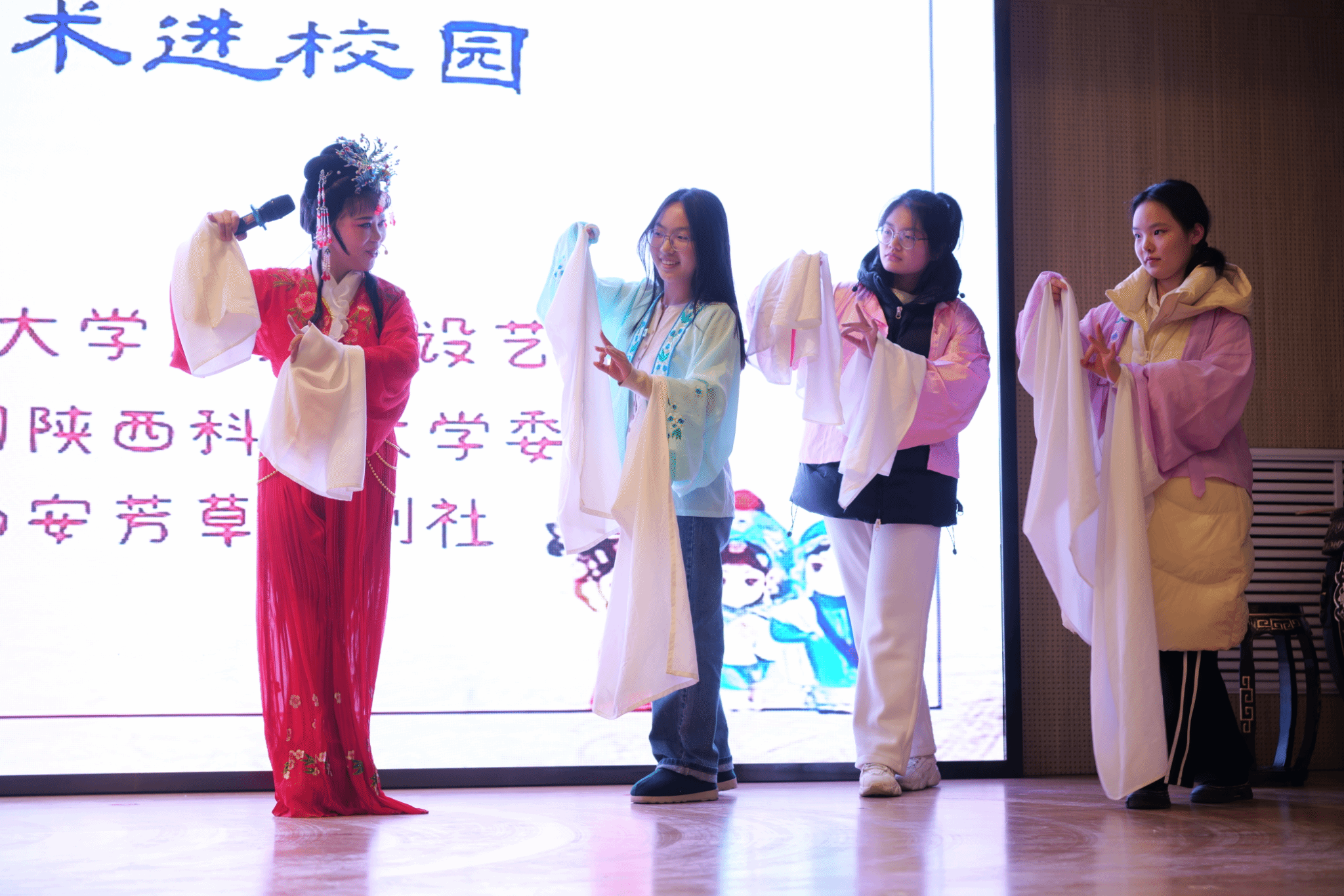 12月17日晚,由校團(tuán)委主辦的“越韻滿秦漢,經(jīng)典永流傳”越劇進(jìn)校園活動(dòng)在設(shè)藝小劇場(chǎng)圓滿落下帷幕。百余名師生觀看了西安芳草越劇社帶來(lái)的精彩演出。