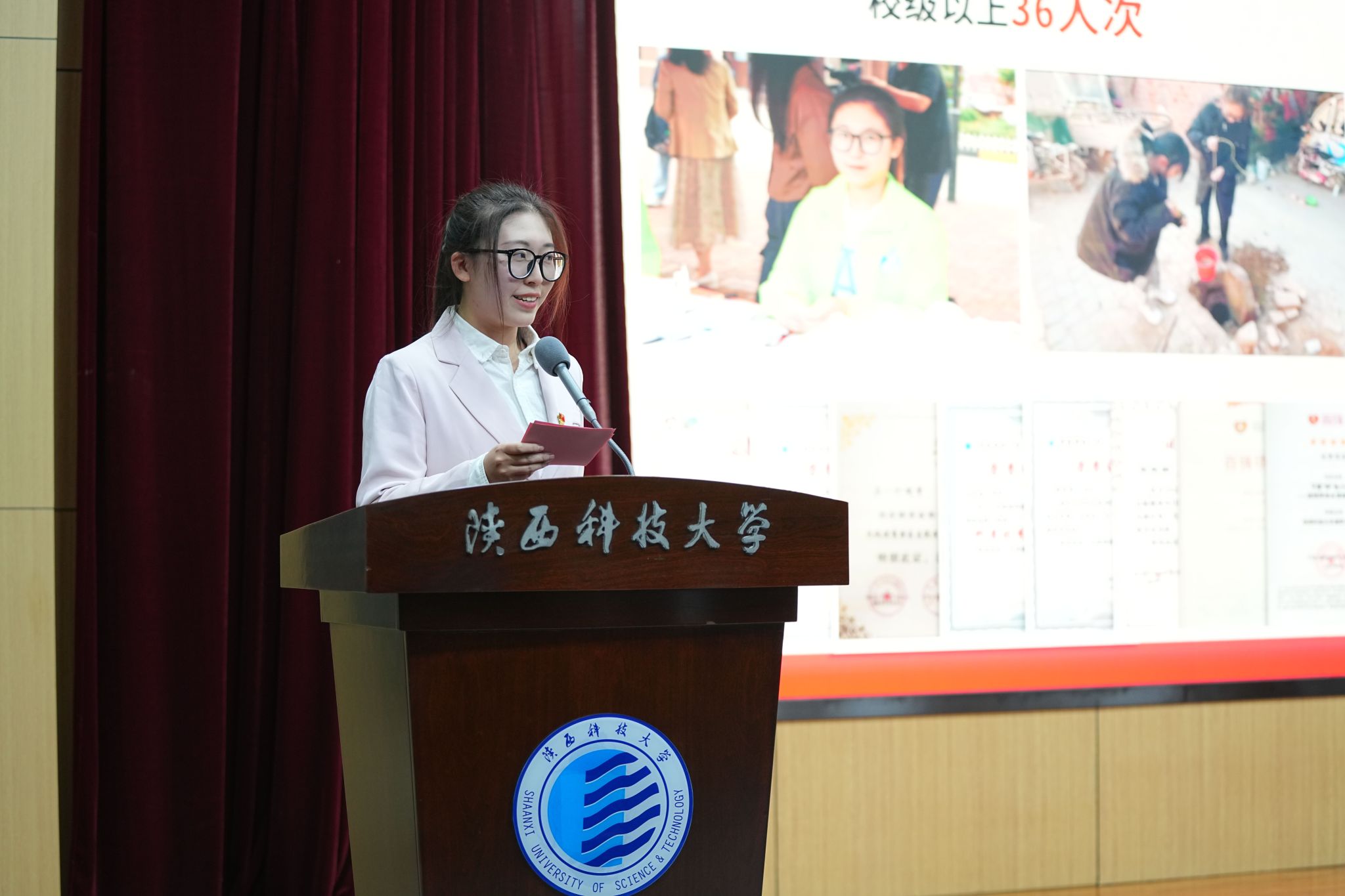 大會最后,校至誠至博獎學(xué)金獲得者、2020級學(xué)生陳益嘉,講述了她保研天津大學(xué)的奮斗歷程,分享了三年多以來在志愿服務(wù)、科技創(chuàng)新等方面精彩充實的大學(xué)生活,鼓勵同學(xué)們志存高遠(yuǎn),腳踏實地。