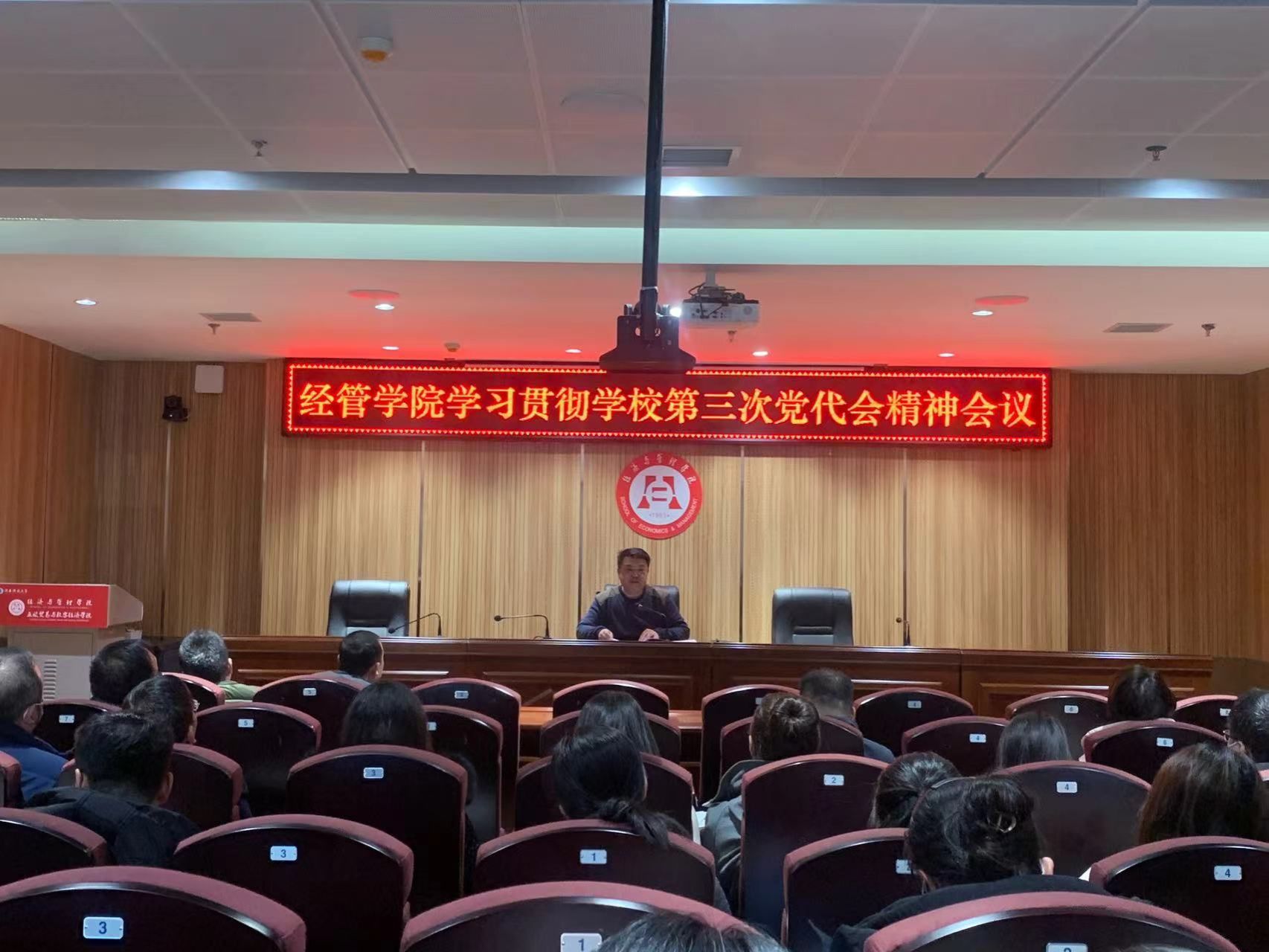 1月12日上午,經(jīng)濟(jì)與管理學(xué)院(亞歐貿(mào)易與數(shù)字經(jīng)濟(jì)學(xué)院)在人文樓A712會議室召開全體會議,傳達(dá)學(xué)習(xí)學(xué)校第三次黨代會精神。會議由學(xué)院黨委書記崔楠主持,全體教工參加學(xué)習(xí)。