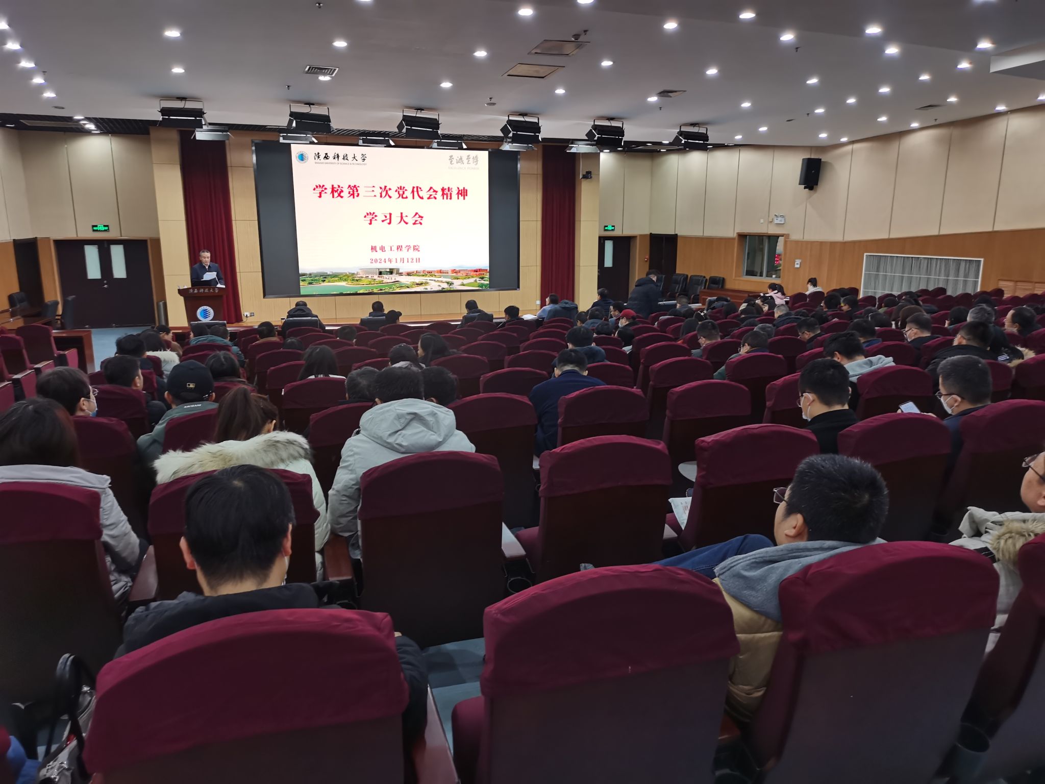 1月12日,機(jī)電工程學(xué)院(智能制造與機(jī)器人工程學(xué)院)在圖書館學(xué)術(shù)報(bào)告廳召開專題會(huì)議學(xué)習(xí)傳達(dá)學(xué)校第三次黨代會(huì)精神。會(huì)議由學(xué)院黨委書記夏祥林主持,全體教職工參會(huì)。