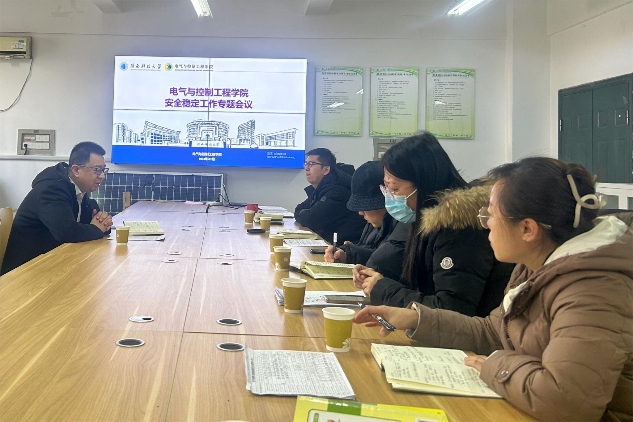 1月27日下午,電氣與控制工程學院在實驗樓2A404召開學院安全穩(wěn)定工作專題會議,傳達全省教育系統(tǒng)及學校安全穩(wěn)定工作會議精神,并就做好近期學院安全穩(wěn)定工作進行安排部署。會議由學院黨委書記喬明哲主持,學院班子成員、學院分紀委、辦公室、實驗室負責人及學生工作輔導員參加會議。