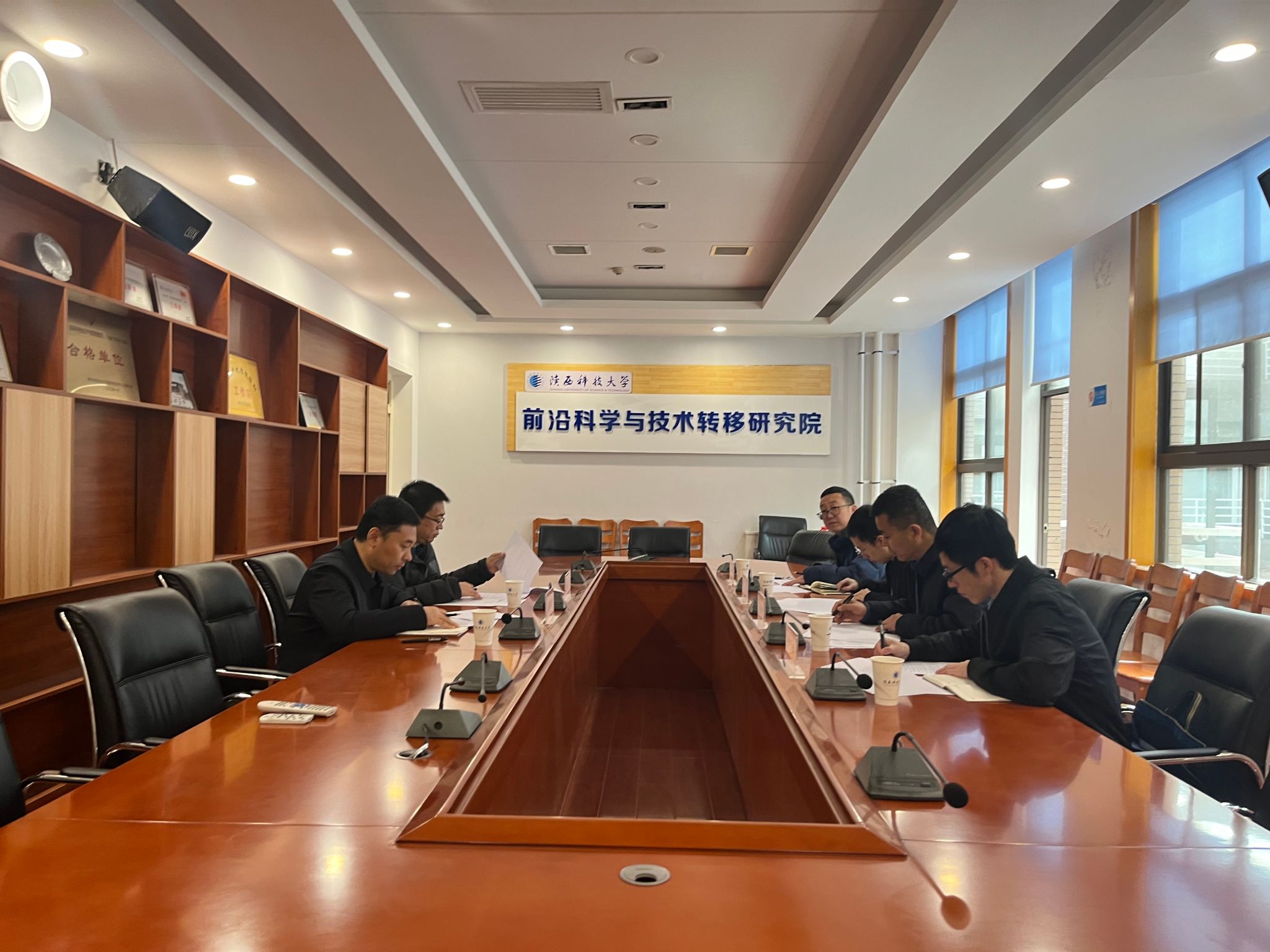 為加快推進(jìn)我校科技成果轉(zhuǎn)化“三項(xiàng)改革”試點(diǎn)任務(wù)落地見效,3月8日上午,渭南市科技局副局長(zhǎng)張勝康一行4人來(lái)我校就秦創(chuàng)原陜西科技大學(xué)(渭南)技術(shù)轉(zhuǎn)移中心建設(shè)工作進(jìn)行專項(xiàng)調(diào)研。前沿院相關(guān)科室負(fù)責(zé)人參加座談,會(huì)議由前沿院副院長(zhǎng)張鵬偉主持。