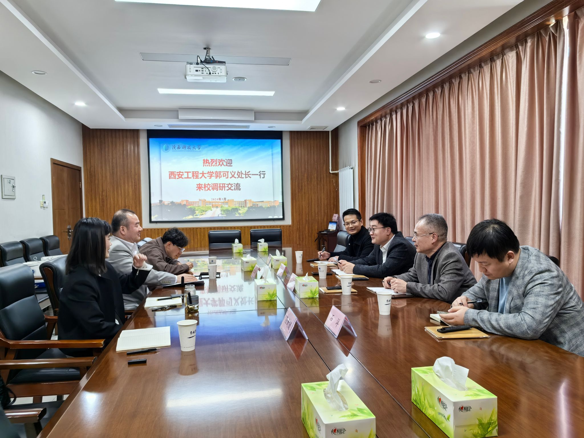 3月21日下午,西安工程大學(xué)國(guó)內(nèi)合作與校友工作處處長(zhǎng)郭可義一行4人來(lái)我校就校友會(huì)、基金會(huì)等工作進(jìn)行調(diào)研交流。座談會(huì)由校友總會(huì)辦公室主任殷立雄主持。