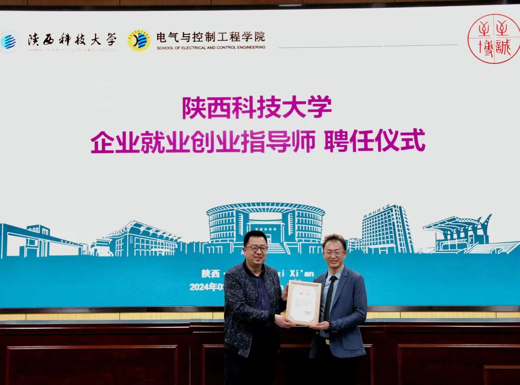 “大咖職講”系列講座是電控學(xué)院在人才培養(yǎng)、校企合作方面的特色常態(tài)化活動(dòng),旨在借助各企業(yè)大咖的專業(yè)力量和資源優(yōu)勢(shì),對(duì)接社會(huì)需求,增強(qiáng)電控學(xué)子的就業(yè)競(jìng)爭(zhēng)力,自2023年開辦以來已舉辦4期。會(huì)議伊始,由喬明哲為蘭江平頒發(fā)“陜西科技大學(xué)企業(yè)就業(yè)創(chuàng)業(yè)指導(dǎo)師”聘書,希望共同攜手為同學(xué)們規(guī)劃職業(yè)生涯,拓寬視野。蘭江平表示,擔(dān)任企業(yè)就業(yè)創(chuàng)業(yè)指導(dǎo)師既是一份榮譽(yù),更是一份責(zé)任,今后將切實(shí)發(fā)揮好指導(dǎo)師的作用,輔導(dǎo)大學(xué)生成長(zhǎng)成才。