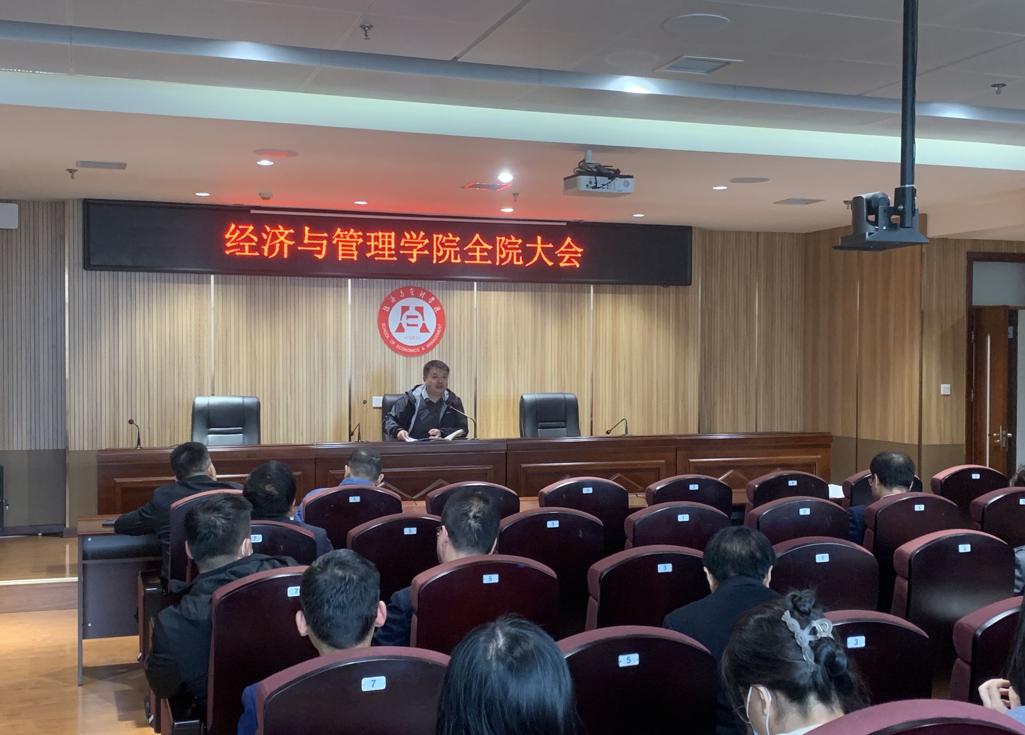 3月27日下午,經(jīng)濟(jì)與管理學(xué)院(亞歐貿(mào)易與數(shù)字經(jīng)濟(jì)學(xué)院)在人文樓A712召開(kāi)學(xué)院教職工大會(huì),對(duì)學(xué)?!半p代會(huì)”精神進(jìn)行專題學(xué)習(xí)。會(huì)議由學(xué)院黨委書記崔楠主持,學(xué)院班子成員和全體教職工參加會(huì)議。