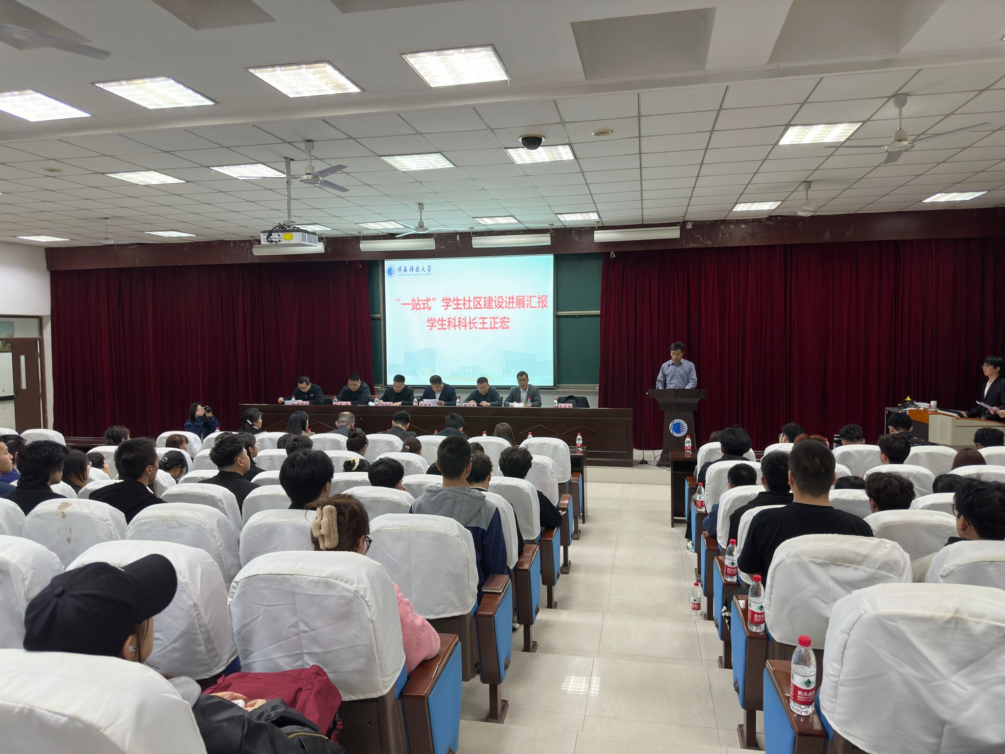 學(xué)生科負(fù)責(zé)人王正宏介紹了學(xué)?!耙徽臼健睂W(xué)生社區(qū)建設(shè)推進(jìn)情況。校學(xué)生自管會(huì)、材料學(xué)院自管會(huì)、機(jī)電學(xué)院晨曦急救協(xié)會(huì)、經(jīng)管學(xué)院“一站式”學(xué)生事務(wù)服務(wù)中心等作為學(xué)生組織代表,圍繞“立足自身職責(zé),參與社區(qū)建設(shè)”主題進(jìn)行了工作交流。