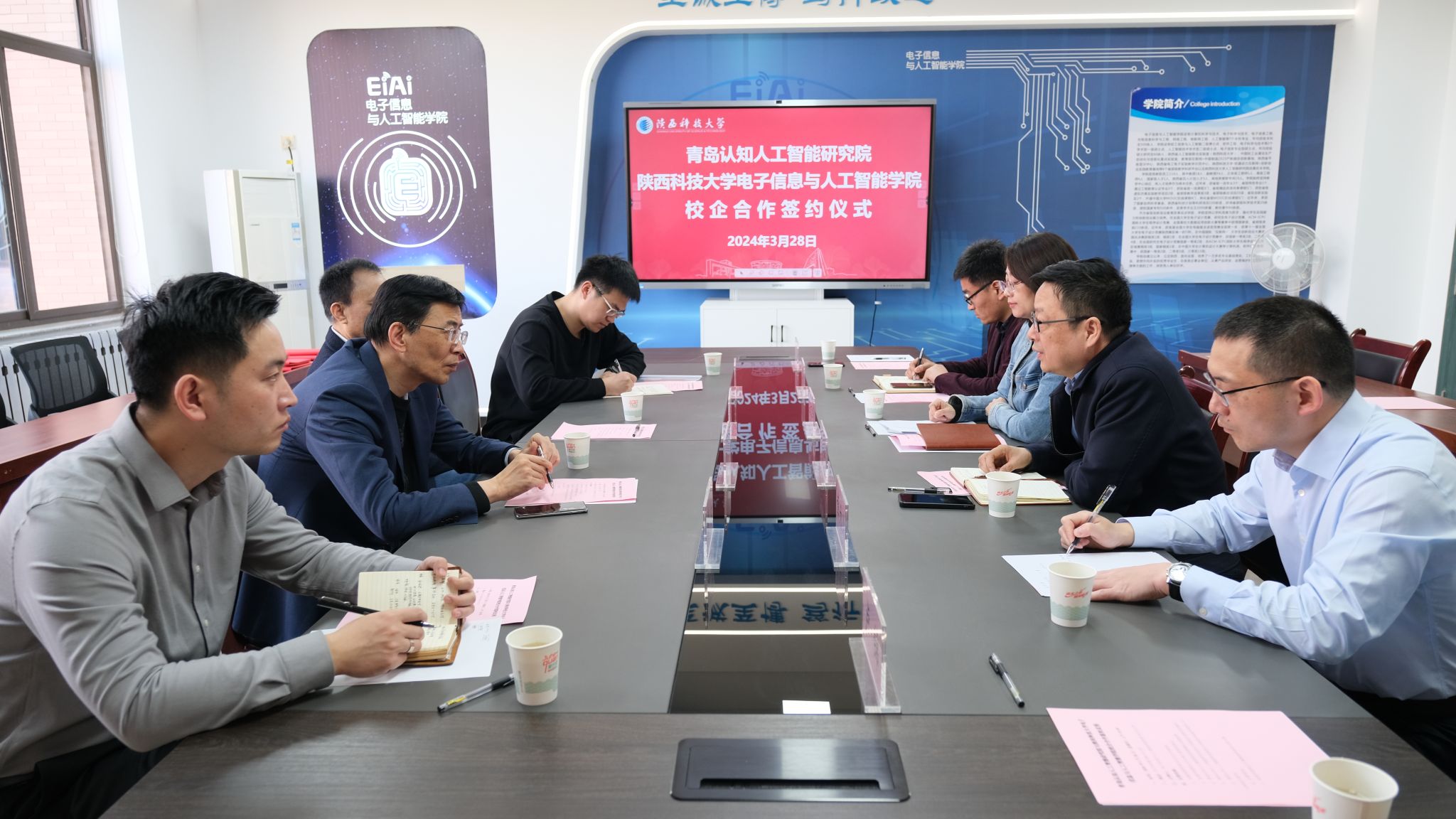 會(huì)上,呂文華對(duì)青島認(rèn)知人工智能研究院專家的到來(lái)表示歡迎,介紹了學(xué)校的發(fā)展歷程和近年來(lái)在師資隊(duì)伍、學(xué)科建設(shè)、科研成果方面的情況。她希望,雙方能夠在科研創(chuàng)新、成果轉(zhuǎn)化等多方面不斷強(qiáng)化協(xié)同思維,建立長(zhǎng)期的合作關(guān)系。馬令坤就電智學(xué)院的歷史沿革、專業(yè)發(fā)展、科研團(tuán)隊(duì)和人才培養(yǎng)等方面做了介紹。他表示,深化院校合作一直以來(lái)都是學(xué)校和學(xué)院高度重視的重點(diǎn)工作,希望雙方充分發(fā)揮各自優(yōu)勢(shì),實(shí)現(xiàn)資源共享。