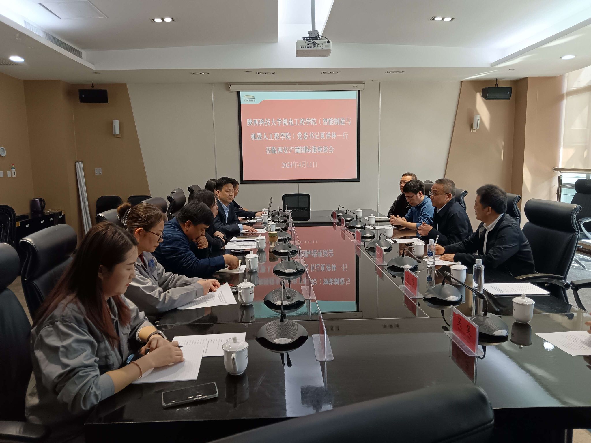 三方在浐灞國際港務(wù)區(qū)管委會(huì)進(jìn)行了座談交流。張琳、王凱介紹了西安浐灞國際港投資與營商環(huán)境、制造和科技型企業(yè)落地情況。夏祥林表示,浐灞國際港務(wù)區(qū)發(fā)展理念和勢(shì)頭讓人印象深刻,不僅在中歐班列和保稅經(jīng)濟(jì)方面發(fā)揮了內(nèi)陸港優(yōu)勢(shì),而且制造業(yè)的布局也頗具前瞻性。轄區(qū)的企業(yè)在多個(gè)版塊與機(jī)電學(xué)院的專業(yè)方向比較契合、互補(bǔ)性明顯。楊立軍介紹了我?!叭齽?chuàng)兩遷”發(fā)展歷程、特色亮點(diǎn)和服務(wù)地方經(jīng)濟(jì)的良好態(tài)勢(shì),講解了機(jī)電學(xué)院的學(xué)科專業(yè)及科研情況,表示機(jī)電學(xué)院具有機(jī)械工程一級(jí)博士點(diǎn)、動(dòng)力工程與工程熱物理以及即將招生的智能科學(xué)與技術(shù)一級(jí)碩士學(xué)科,擁有智能裝備與控制、智能制造與微機(jī)電系統(tǒng)、摩擦學(xué)與表面工程、醫(yī)工結(jié)合生物材料制造、新能源等研究方向,與企業(yè)合作發(fā)展前景廣闊。趙江民介紹了西安達(dá)升科技股份有限公司創(chuàng)業(yè)發(fā)展歷史,聚焦工業(yè)機(jī)器人領(lǐng)域,通過為制造業(yè)提供智能化解決方案取得了不俗業(yè)績,希望與機(jī)電學(xué)院達(dá)成合作,共建研究生聯(lián)合培養(yǎng)基地、聯(lián)建實(shí)驗(yàn)室和大學(xué)生實(shí)習(xí)基地。