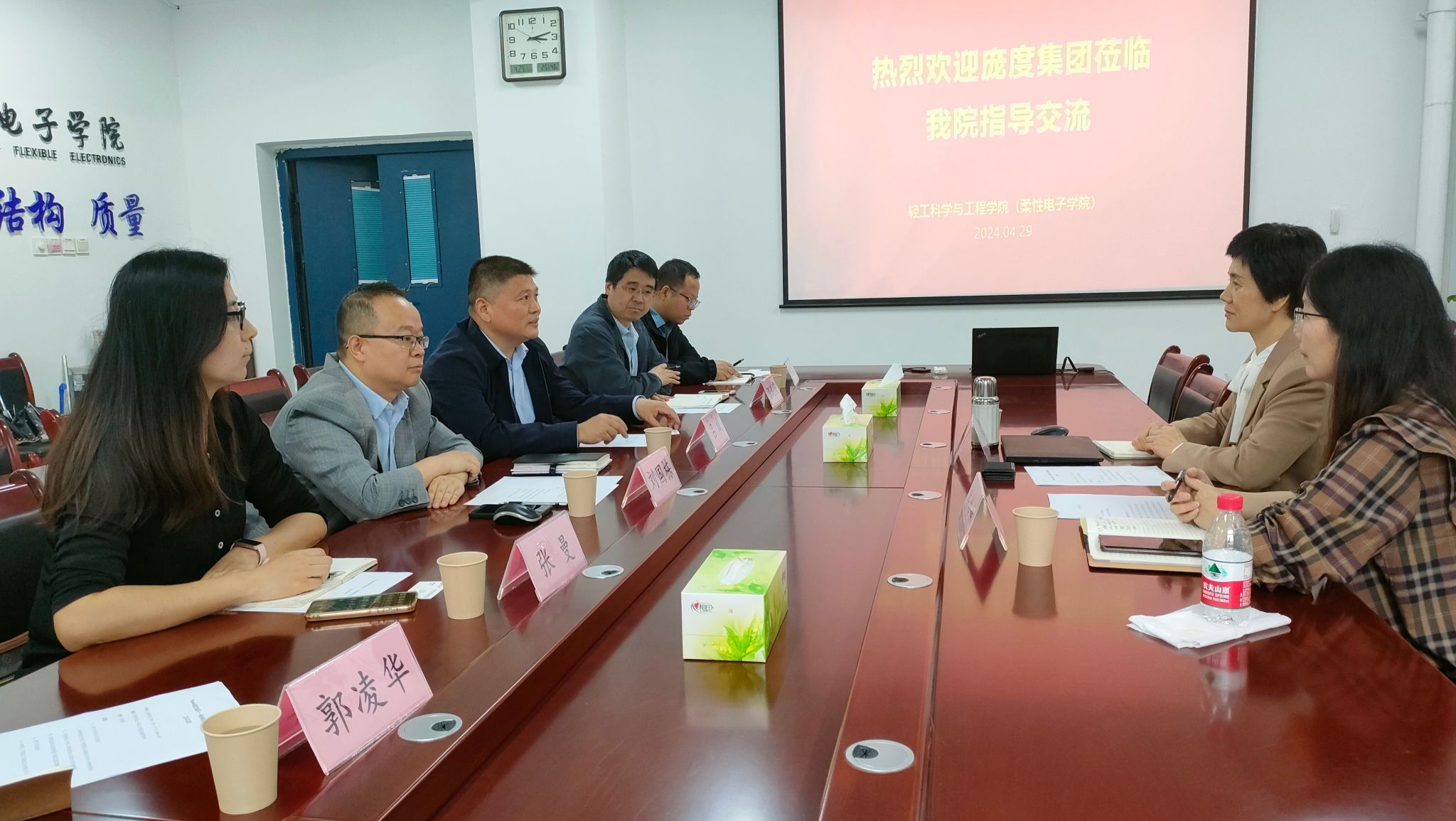 4月29日下午,龐度集團(tuán)副總裁郭曉慧、人力資源總監(jiān)陳樓娣等一行到輕工科學(xué)與工程學(xué)院(柔性電子學(xué)院)進(jìn)行交流。輕工學(xué)院院長呂斌、副院長劉國棟、黨委副書記張乾隆、新媒體技術(shù)系副主任及部分教師代表參加座談。會議由劉國棟主持。