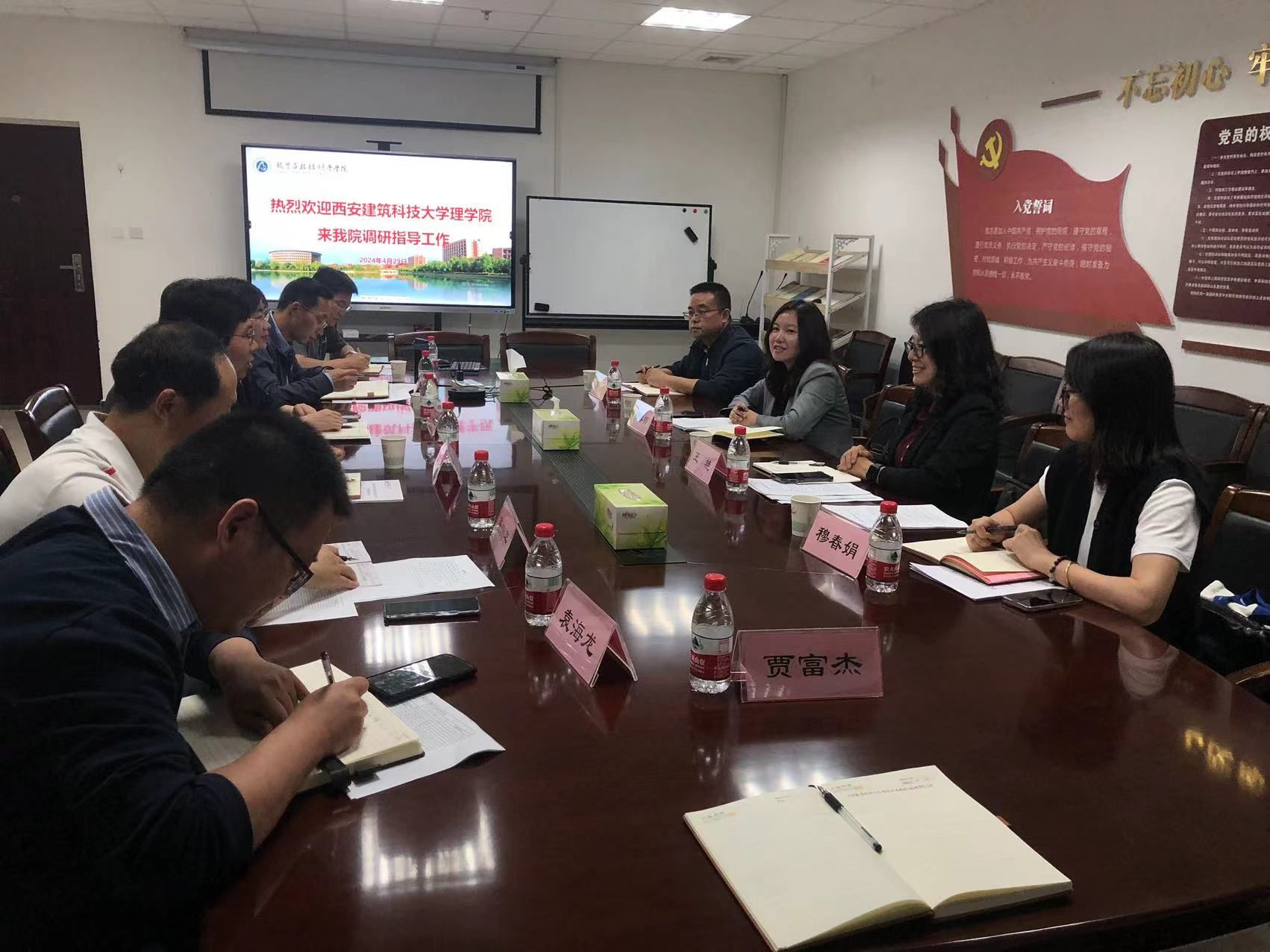 4月29日下午,西安建筑科技大學(xué)理學(xué)院教學(xué)副院長宮春梅、大數(shù)據(jù)系主任劉勇、數(shù)學(xué)系主任王艷、教學(xué)秘書穆春娟一行來到數(shù)學(xué)學(xué)院進(jìn)行調(diào)研交流,數(shù)學(xué)學(xué)院黨委書記郭改慧、教學(xué)副院長白云霄及各系主任、教學(xué)秘書參加了交流活動。