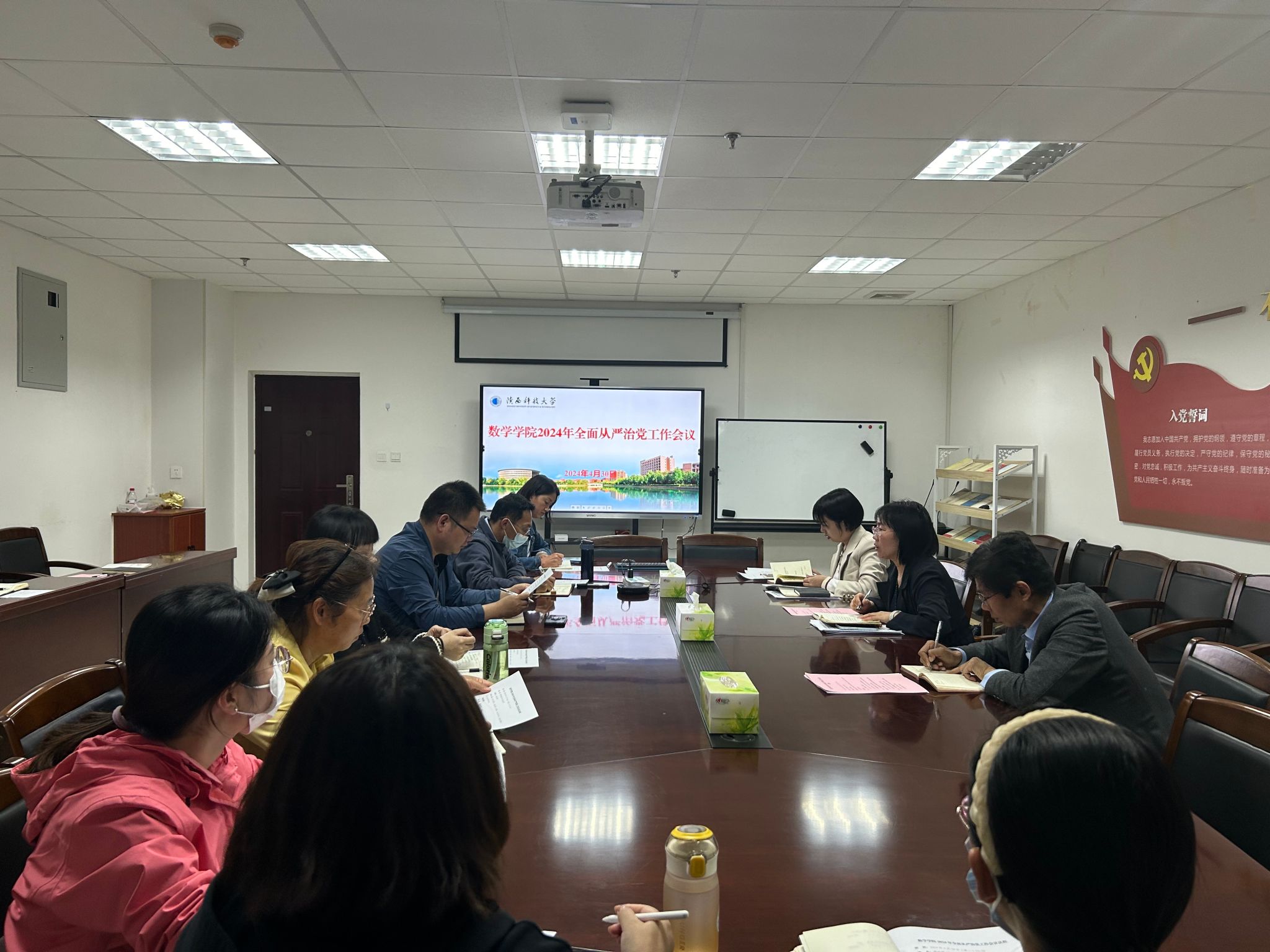 4月30日下午,數(shù)學(xué)與數(shù)據(jù)科學(xué)學(xué)院在理科樓423會(huì)議室召開全面從嚴(yán)治黨工作會(huì)議,學(xué)院班子成員、各系(室)主任、全體黨支部書記參加會(huì)議。會(huì)議由學(xué)院黨委書記郭改慧主持。