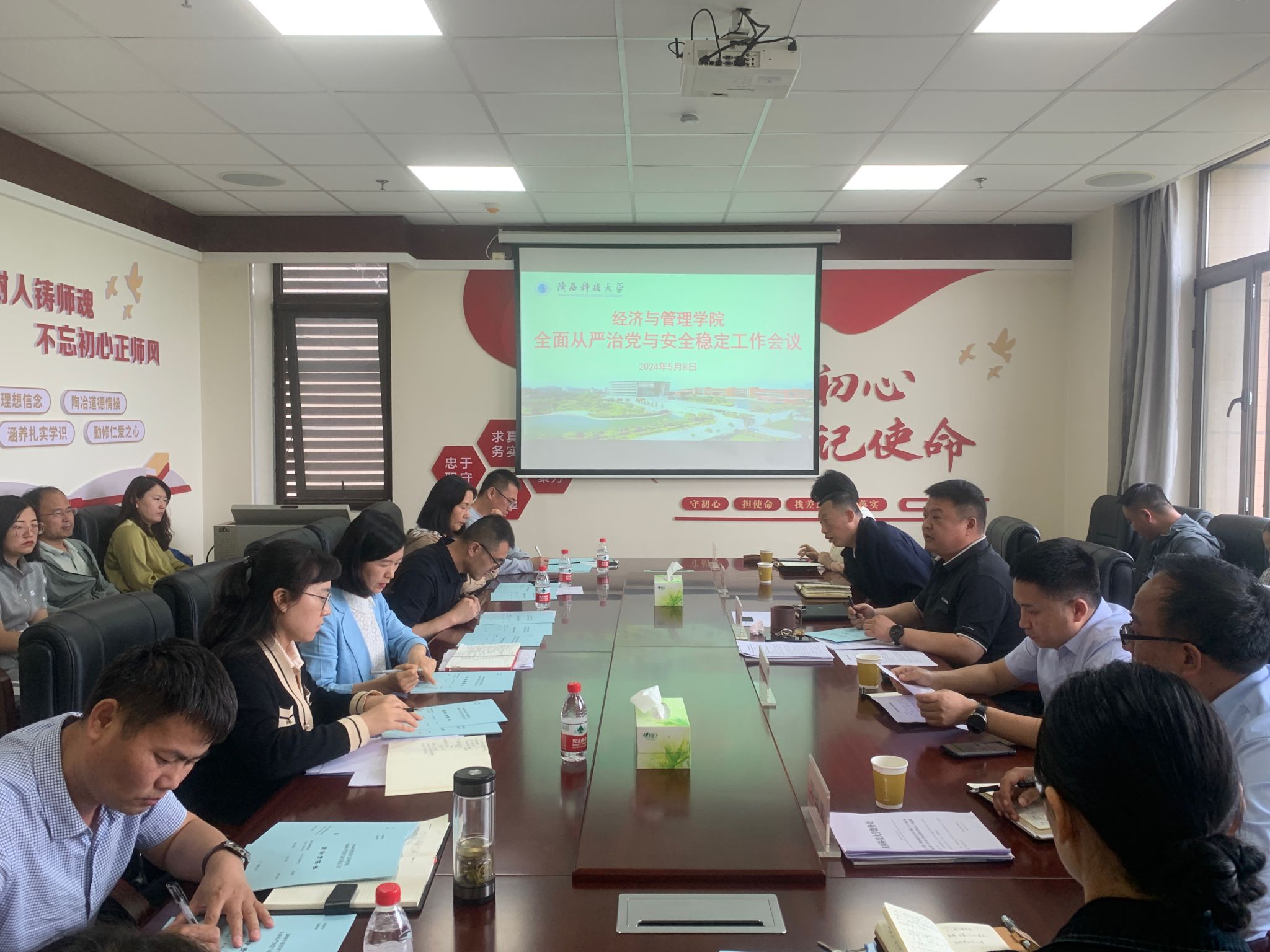 5月8日上午,經(jīng)濟與管理學(xué)院(亞歐貿(mào)易與數(shù)字經(jīng)濟學(xué)院)黨委在人文樓A415會議室召開2024年全面從嚴治黨和安全穩(wěn)定工作會議,傳達學(xué)習(xí)學(xué)校院級單位黨組織會議、2024年全面從嚴治黨工作會議、統(tǒng)一戰(zhàn)線工作領(lǐng)導(dǎo)小組(擴大)會議等主要精神,安排部署學(xué)院2024年全面從嚴治黨和安全穩(wěn)定主要工作。學(xué)院黨委班子成員、黨委委員、系主任、教工黨支部書記、教學(xué)秘書、科研秘書、研究生秘書、實驗室負責(zé)人員參加會議,會議由學(xué)院黨委書記崔楠主持。